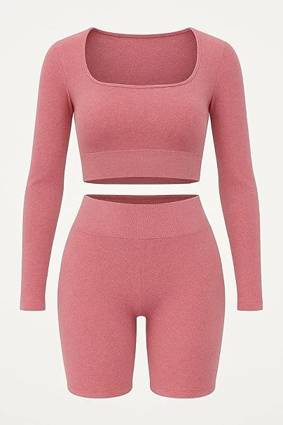 • زي رياضي متكامل: تتضمن حمالة صدر رياضية داعمة وسروال ضيق عالي الخصر بدون خياطة، مصممة لتوفير الراحة والأداء.