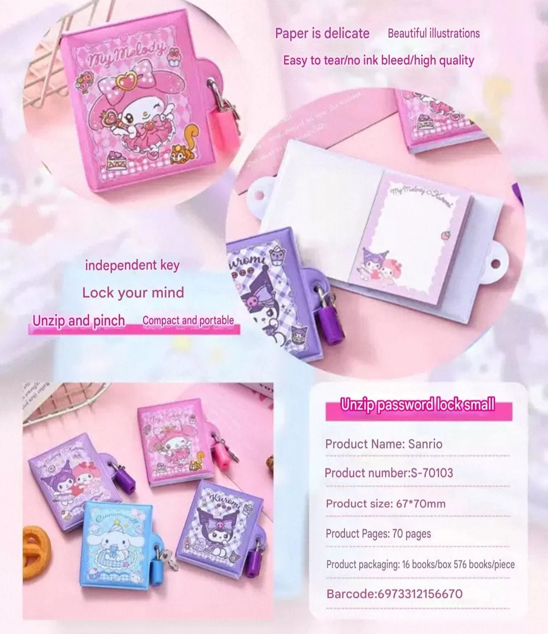📒 دفتر سانريو الصغير بقفل – تصميم شخصيات محبوبة