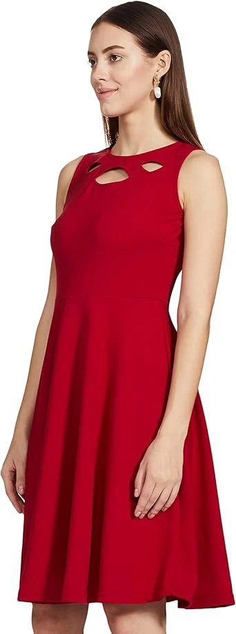 • التصميم: سكيتر بقصة واسعة من الأسفل | النمط: سادة| القصة: قصة ضيقة| القبة: قبة دائرية| الأكمام: بدون أكمام | الطول: بطول الركبة