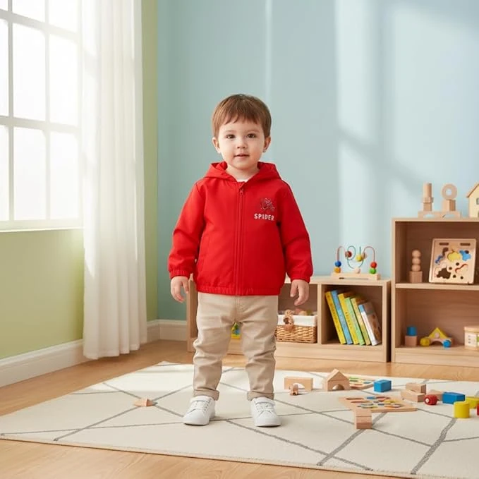 جاكيت بغطاء للرأس للأولاد بتصميم عصري خفيف الوزن مطبوع عليه عنكبوت، ملابس خريفية بأكمام طويلة، معطف بسحاب 4-8T