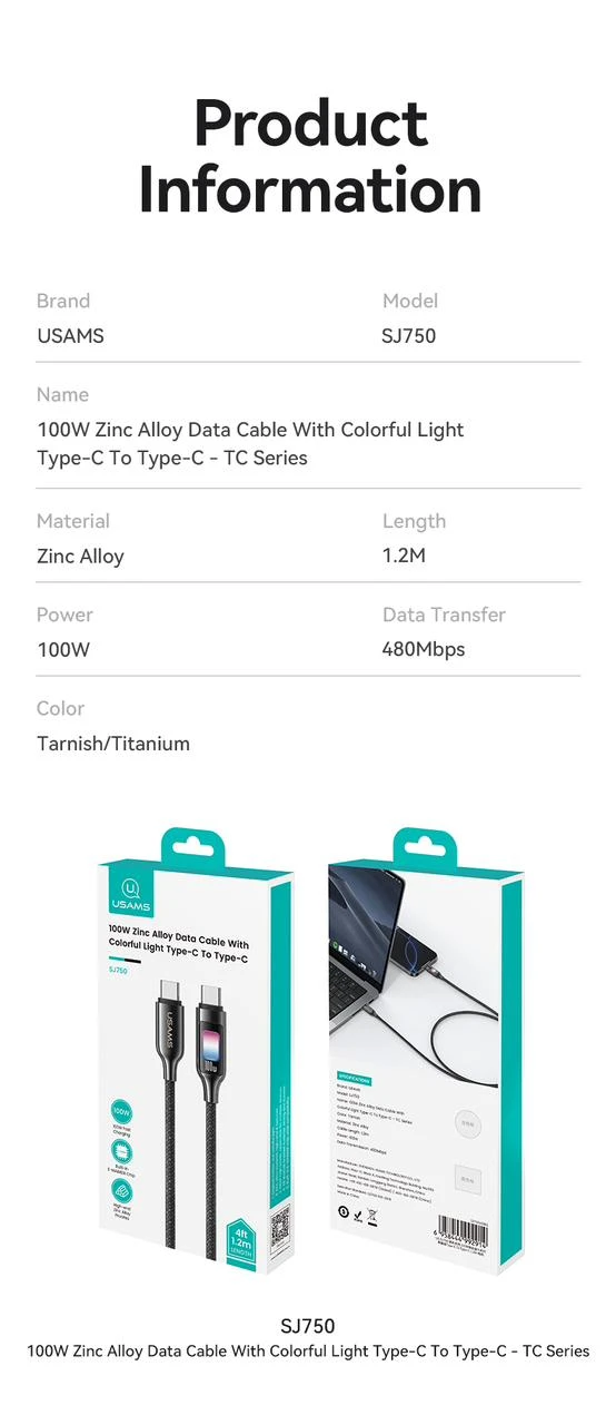 ⚡ كابل USAMS SJ750 – قوة وأناقة في شحن واحد: