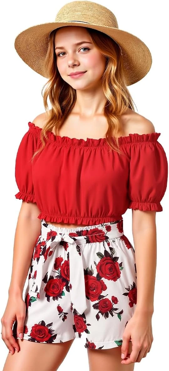 زي للبنات من اكسولينوفا، قماش مطاطي في 4 اتجاهات مع جزء علوي بلون سادة مع شورت و