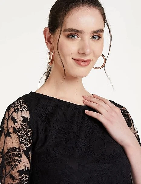 قميص نسائي بتصميم ورود بقصة ضيقة من مس اوليف (MOSS19TP30-01-62_اسود- مقاس XS)