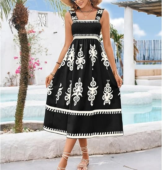 ليجو فستان بحمالات للشاطئ مطبوع للنساء