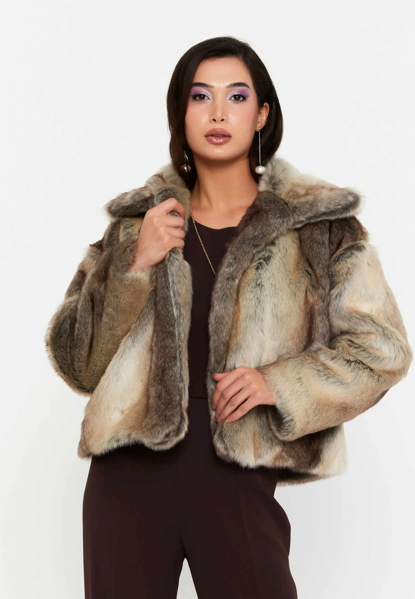 • - معطف فرو فاخر بتصميم أنيق ومظهر فخم