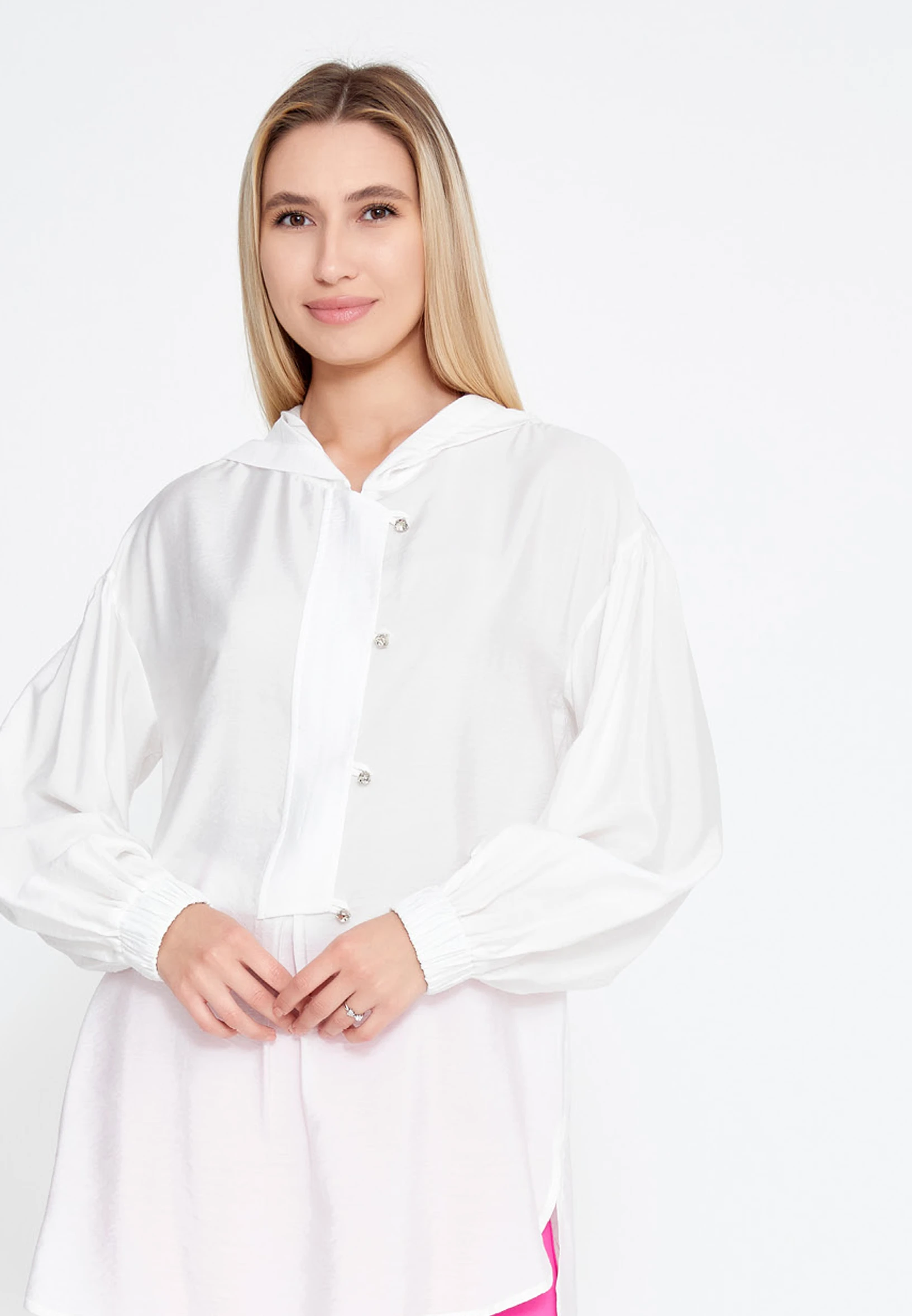 قميص أبيض طويل الأكمام