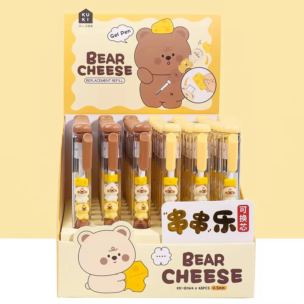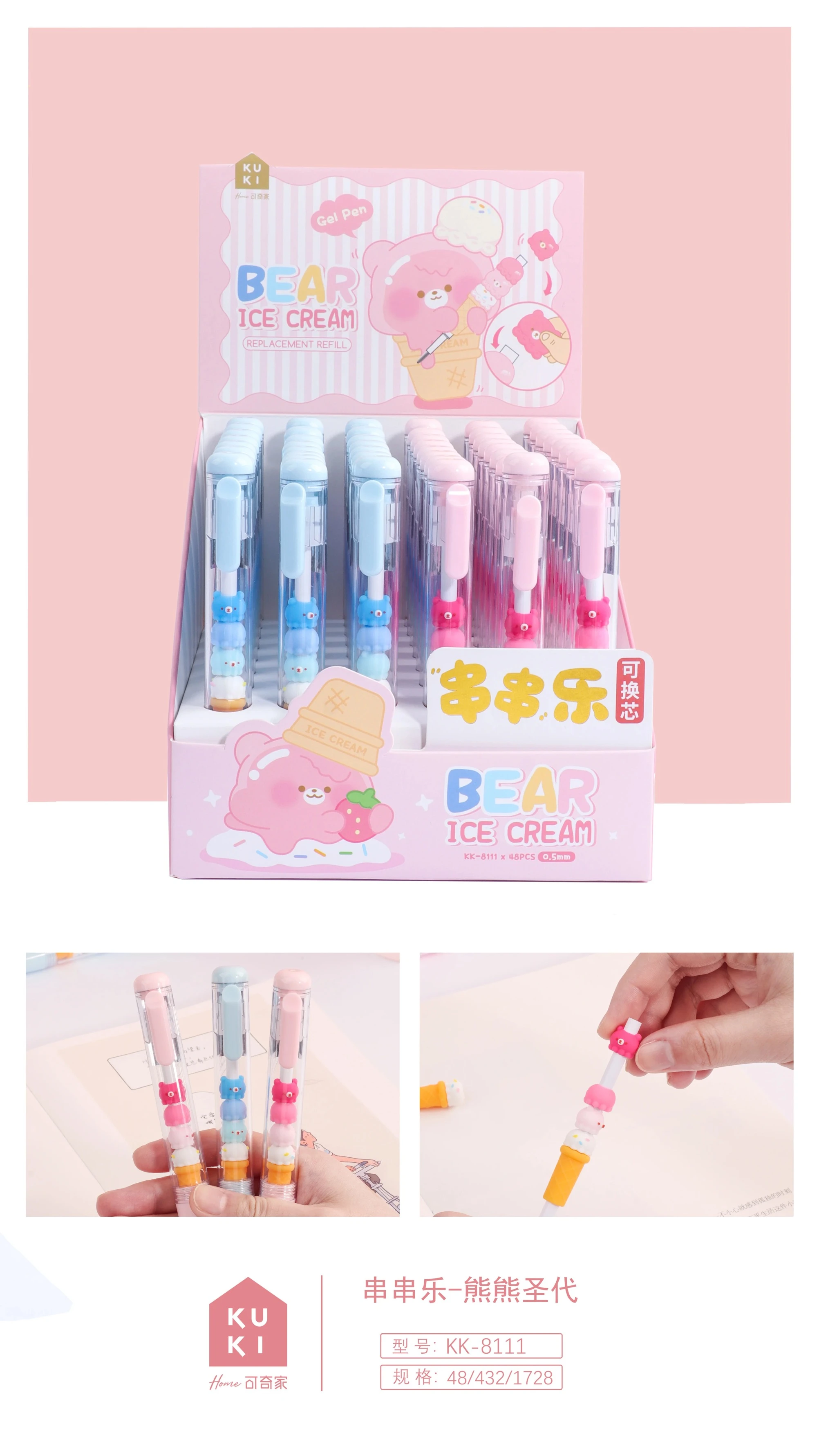🐻 مجموعة أقلام ديكورية – 3 قطع | تصميم شفاف بشخصيات لطيفة