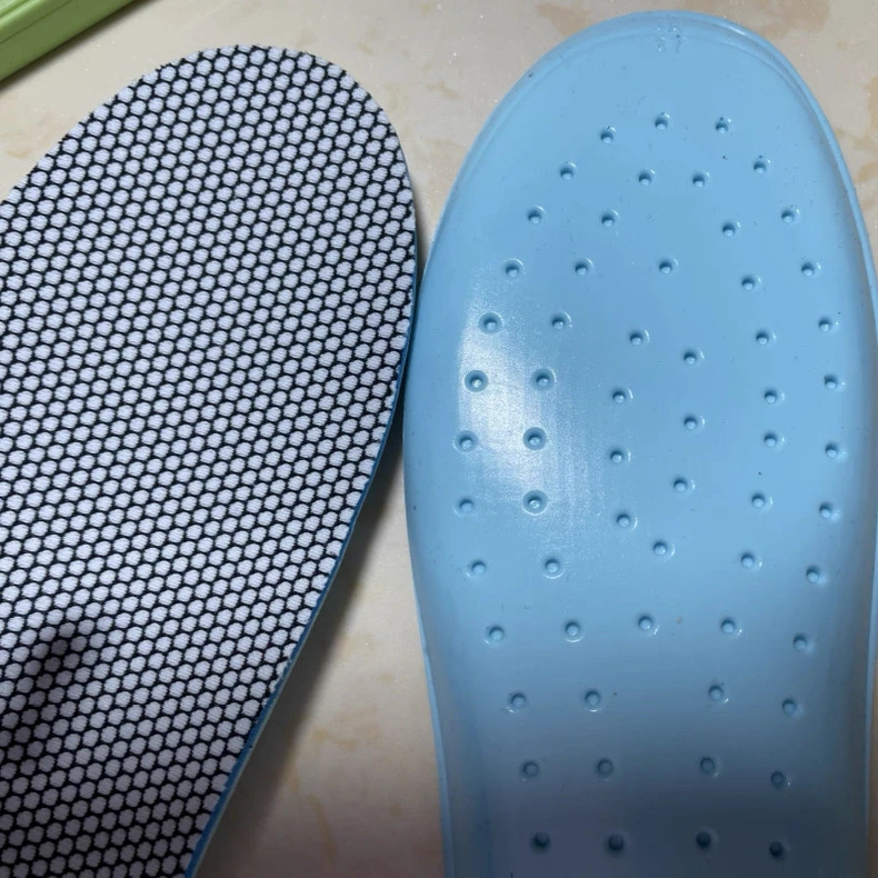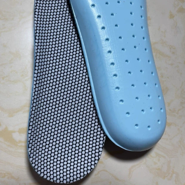 - قاعدة سفلية بلون أزرق فاتح مزودة بثقوب دقيقة لتهوية القدم وتقليل الرطوبة.