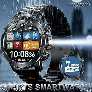 ساعة ذكية للرجال مع مصباح يدوي، مكالمات بلوتوث، اكثر من 100 وضع رياضي، 800mAh، ج
