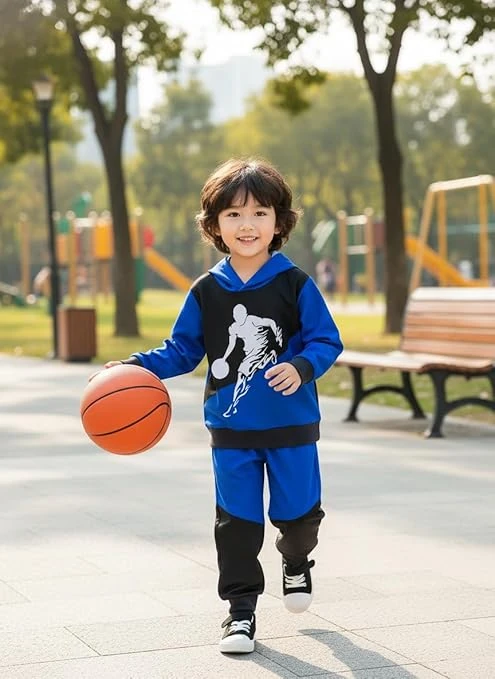 ملابس للأولاد الصغار بأكمام طويلة مكونة من سترة بغطاء للرأس وسروال رياضي مناسبة