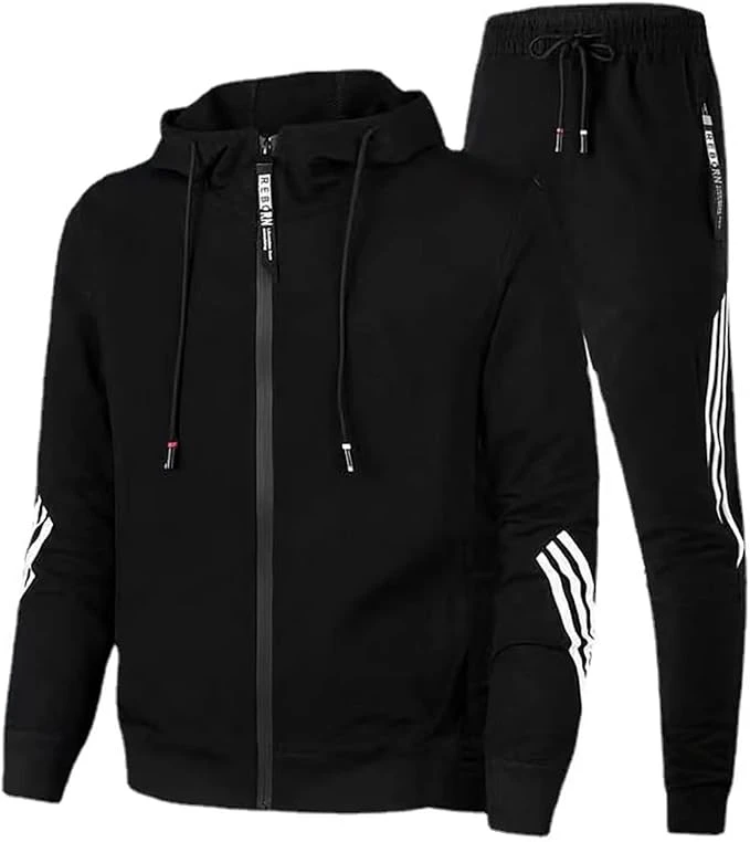 طقم بدلة رياضية كاجوال للرجال من ليونبول بغطاء للرأس وبنطلون رياضي بسحاب كامل من