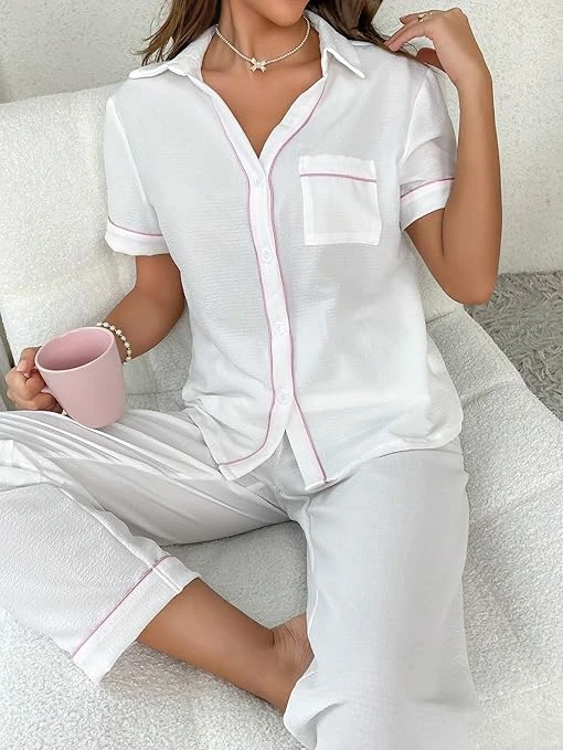 طقم بيجامة بأزرار وأكمام قصيرة، ملابس نوم صيفية ناعمة ومريحة للنساء، من 2 قطعة