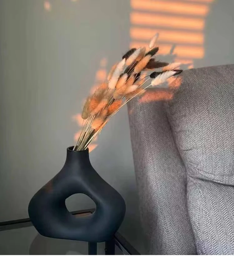 🖤🤍 طقم فازات ديكور خزفية – تصميم عصري نحاتي