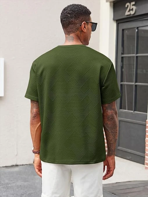 تي شيرت صيفي كاجوال للرجال بأكمام قصيرة وقبة دائرية ضيقة قابل للتمدد من قماش الجاكار المنسوج.
