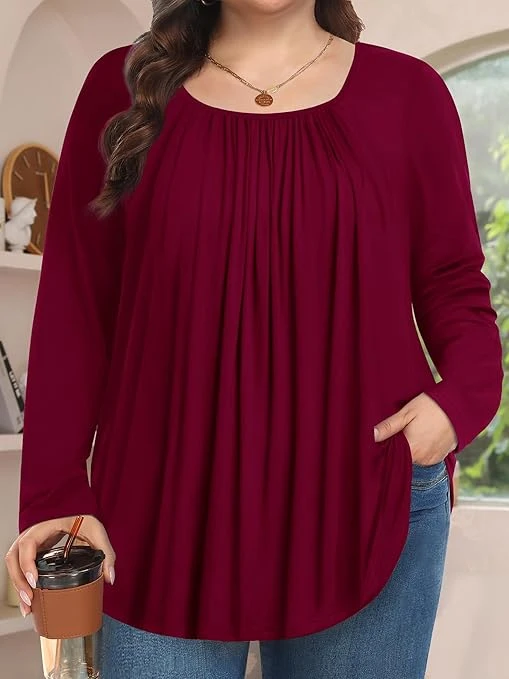 بلايز تونيك كاجوال بمقاس كبير بأكمام طويلة للنساء مقاس اكس لارج - 5 اكس لارج
