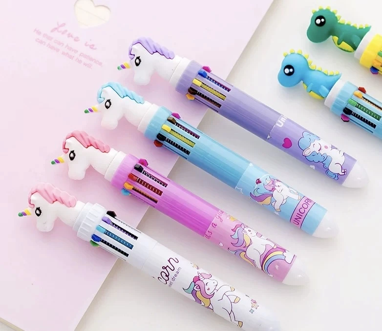 أقلام متعددة الألوان بتصميم يونيكورن وديناصورات