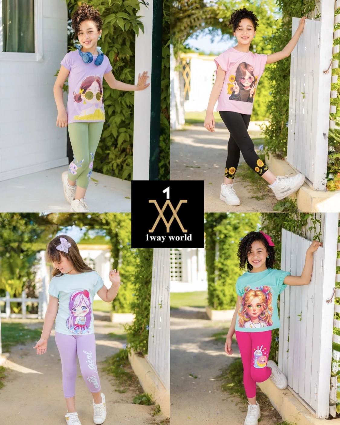 طقم بناتي قطني 100% وتصميم مريح للأطفال