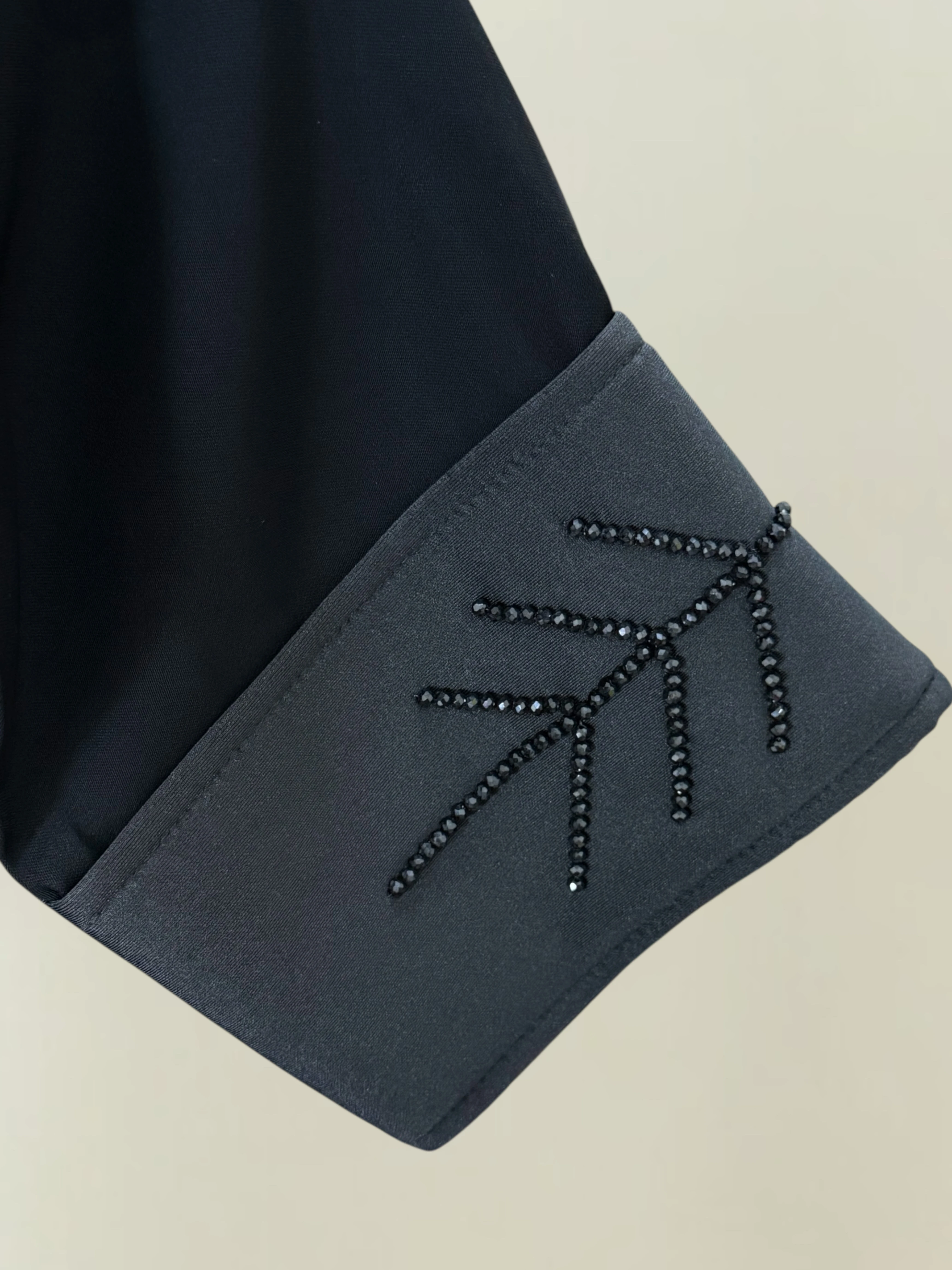 يتميز تصميم العباية المصنوعة من خامة الإنترنت بالأناقة والانسيابية،