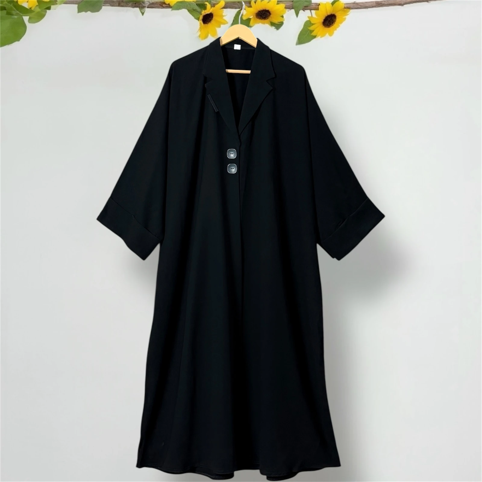 🖤 تأتي مع طرحة سادة متناسقة بنفس اللون ، لتكمل الإطلالة بأسلوب بسيط ومتكامل.