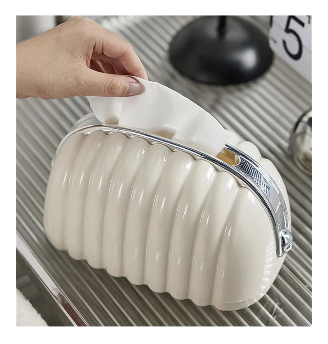 علبة مناديل أنيقة مصممة على شكل شنطة صغيرة بستايل صدفي جذاب،