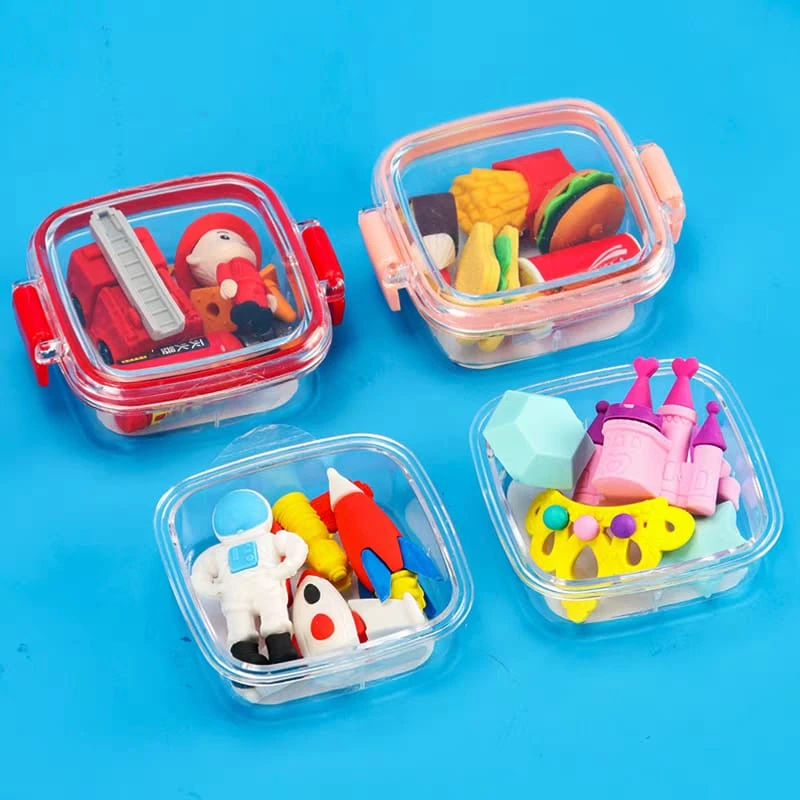 • - علب صغيرة تحتوي ممحاة بأشكال أطعمة متنوعة ولطيفة.