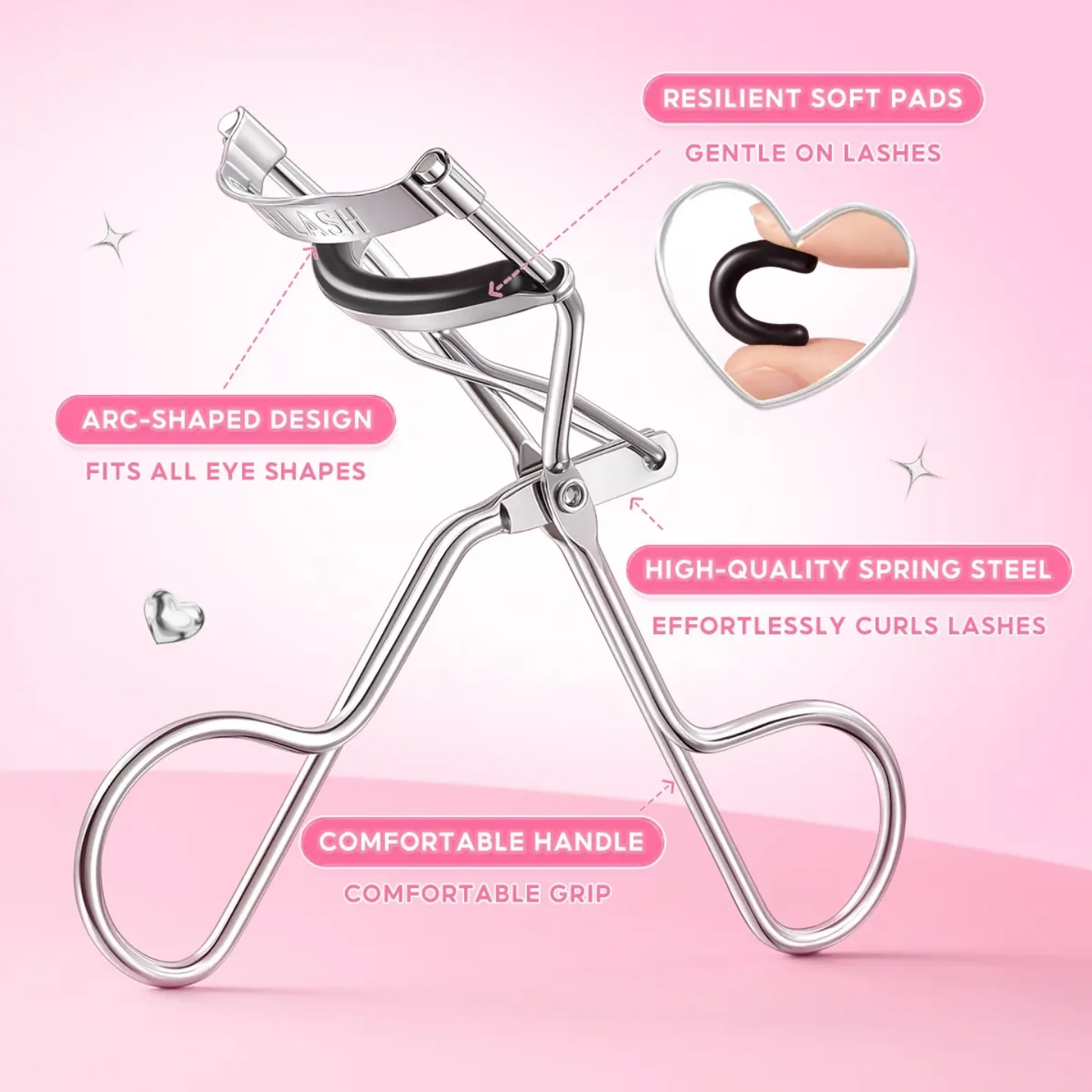 تتميز أداة تجعيد الرموش المبتكرة هذه بتصميم منحني خاص يناسب جميع أشكال العيون.