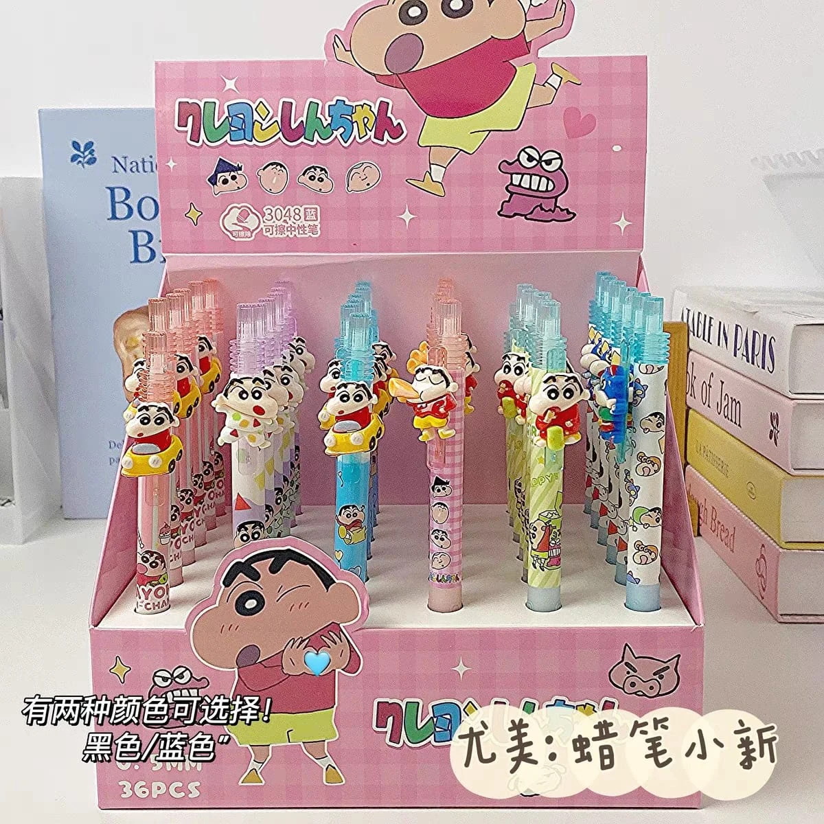 • - النوع: أقلام جافة مزينة بشخصيات كرايون شين‑تشان