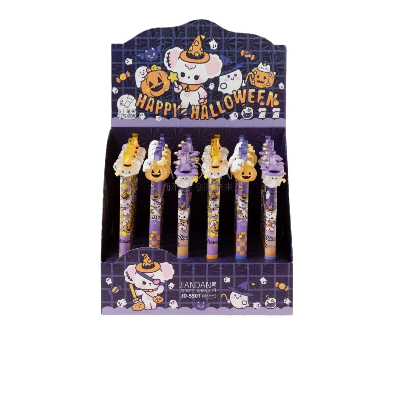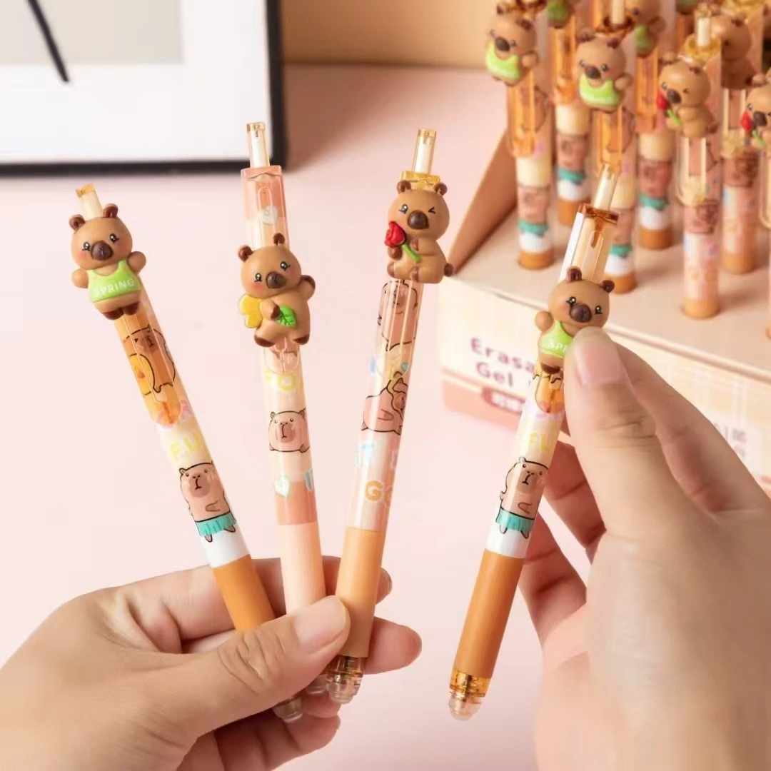 • - أقلام جِل بتصاميم لطيفة ومجسّمات فوق القلم.