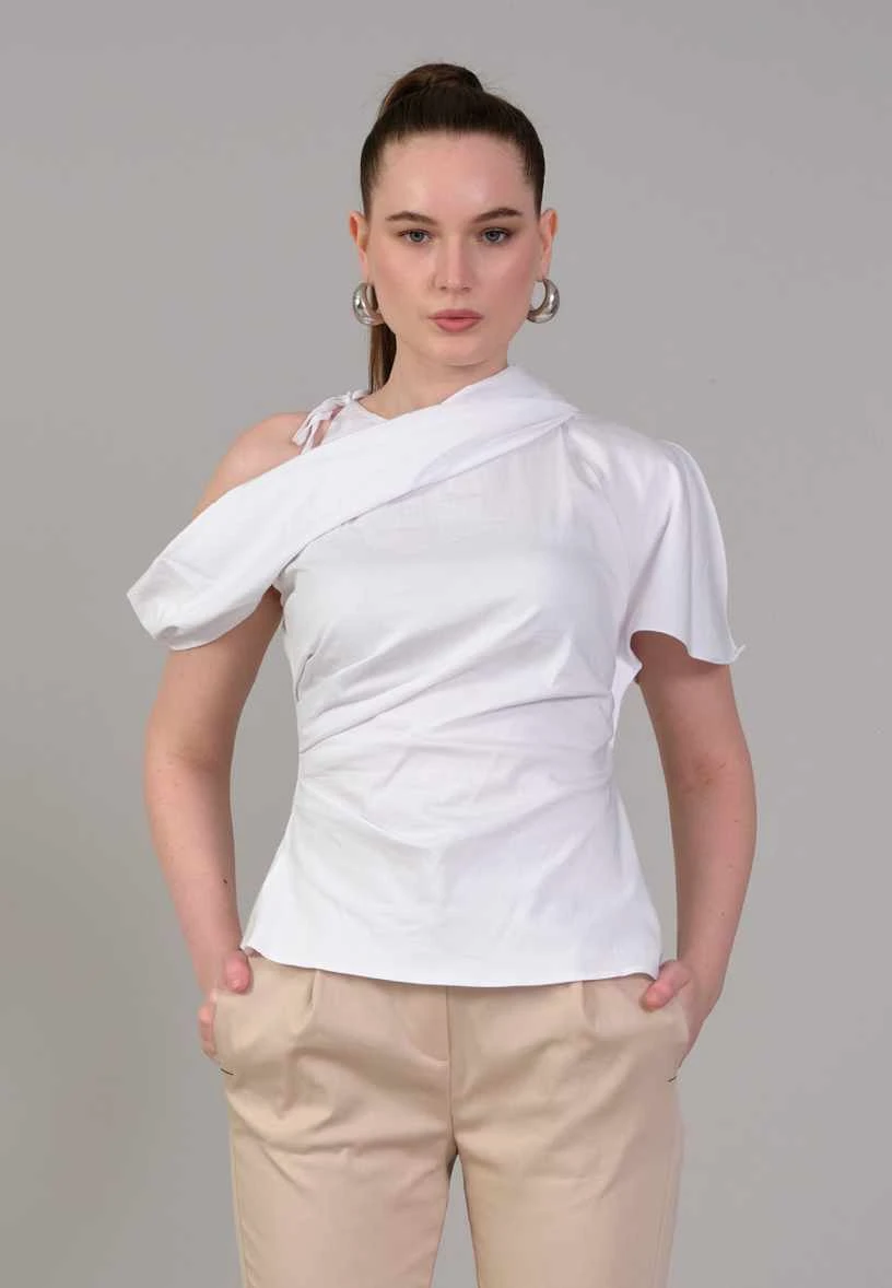 - بلوزة بيضاء بتصميم عصري