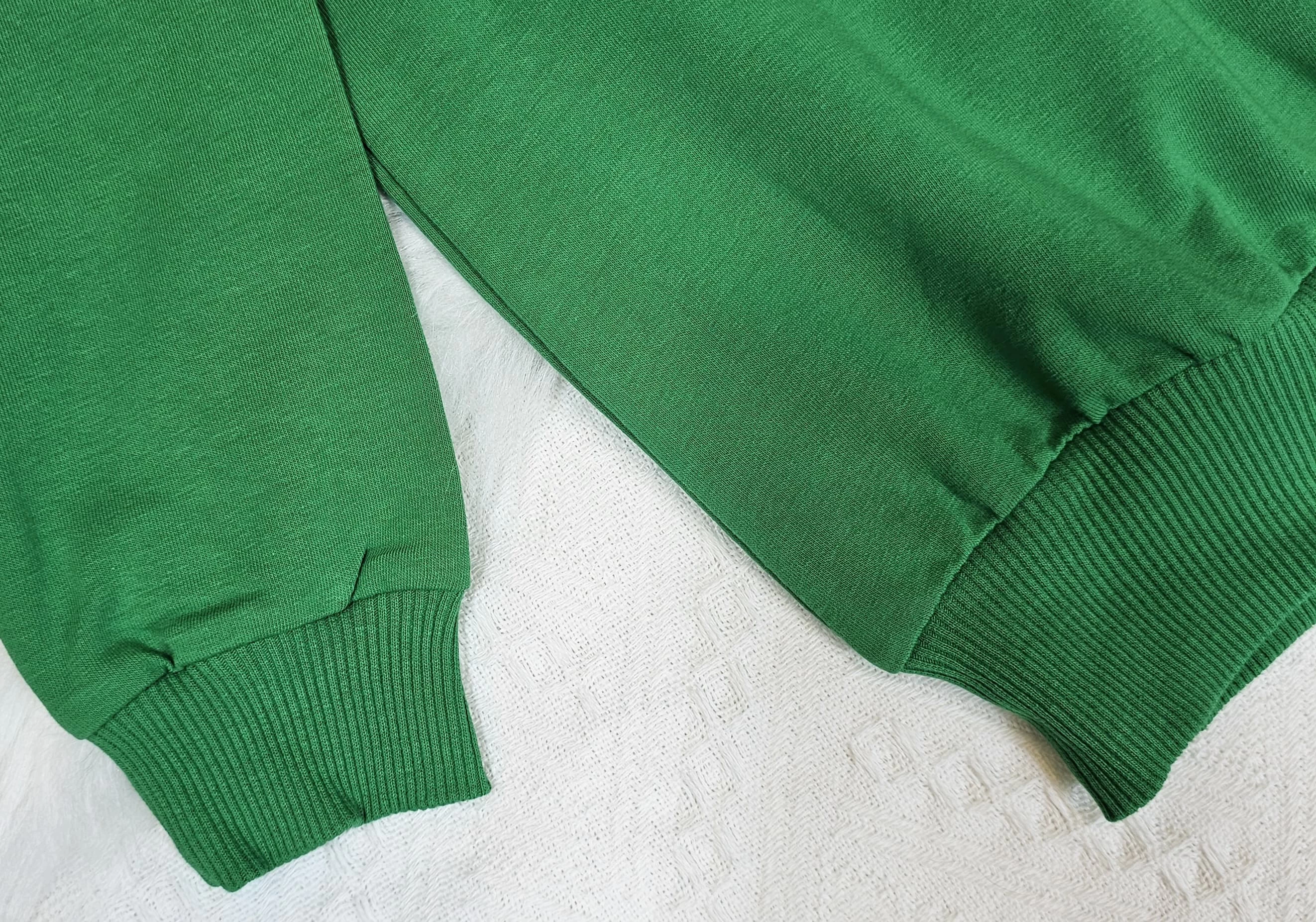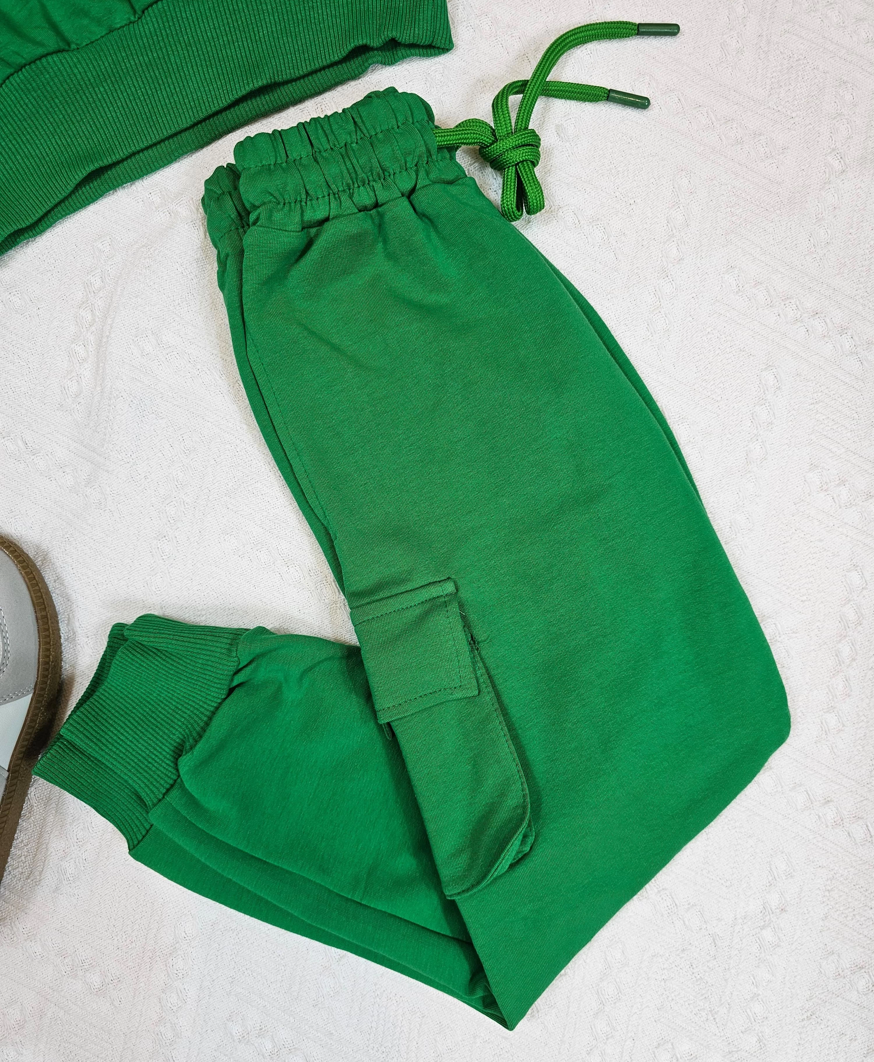 طقم ولادي جميل وانيق بتصميم كاجوال مكون من تيشرت بلون اخضر موحد وبنطال بخصر مطاطي مناسب في الاجواء البارده