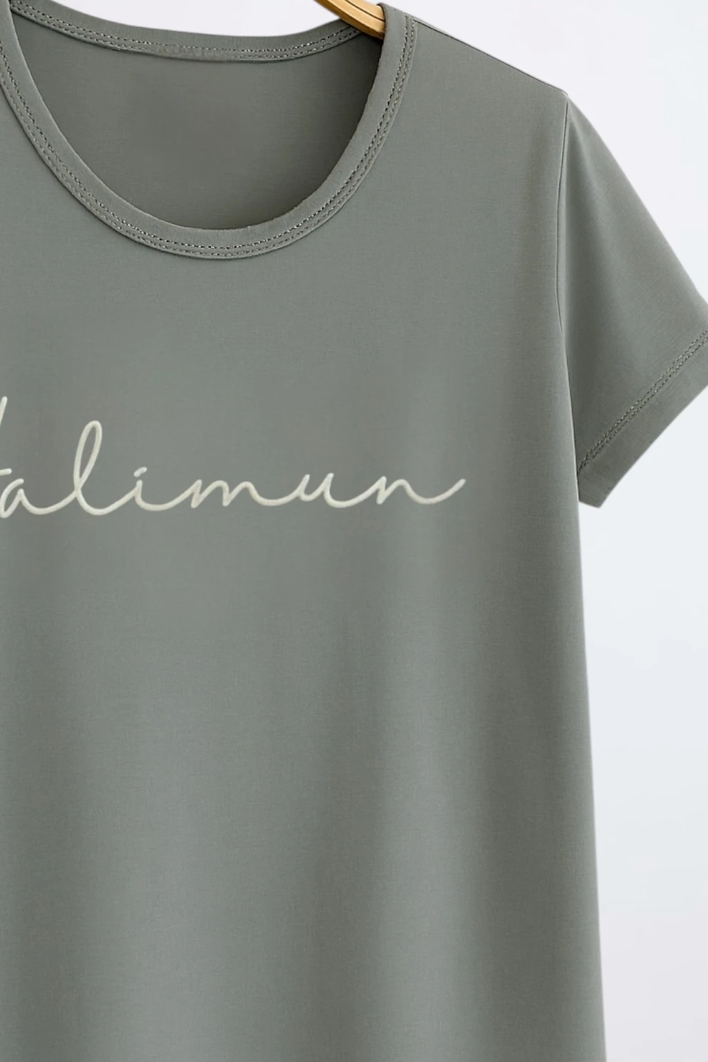 بجامة نسائية بلون رمادي هادئ، تتكون من تيشيرت بأكمام قصيرة