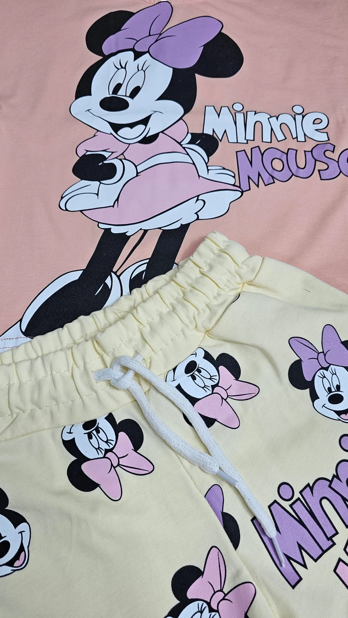 طقم بناتي جميل للصيف مكون من تيشرت وشورت برسوم كرتونيه
