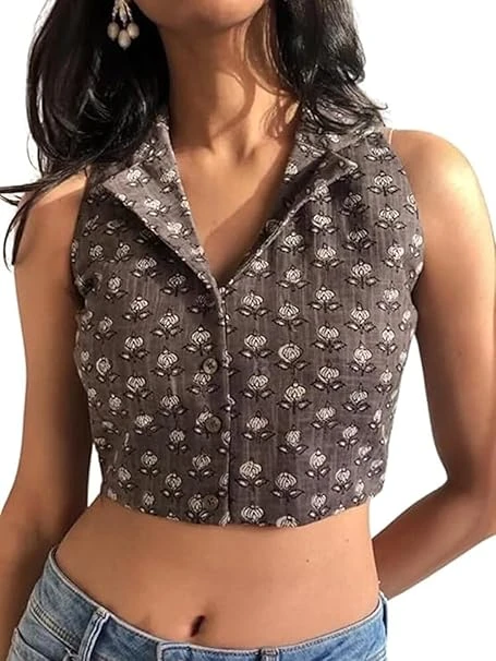 • تفاصيل المنتج: تتضمن هذه البلايز الغربية بلايز خصر للنساء، بتصميم بدون أكمام وزر إغلاق.