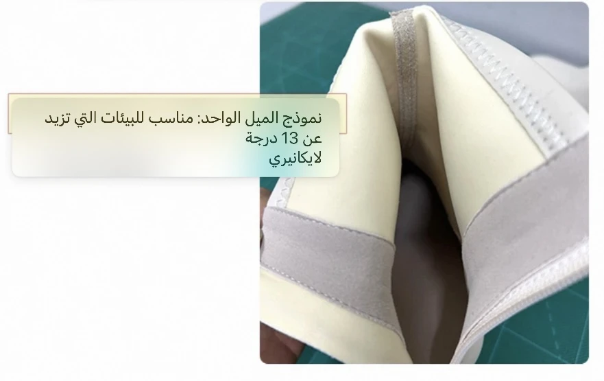 يتميز بتصميم عصري أنيق وبسيط، مع مقدمة مدببة قليلًا وسحاب جانبي للإغلاق.
