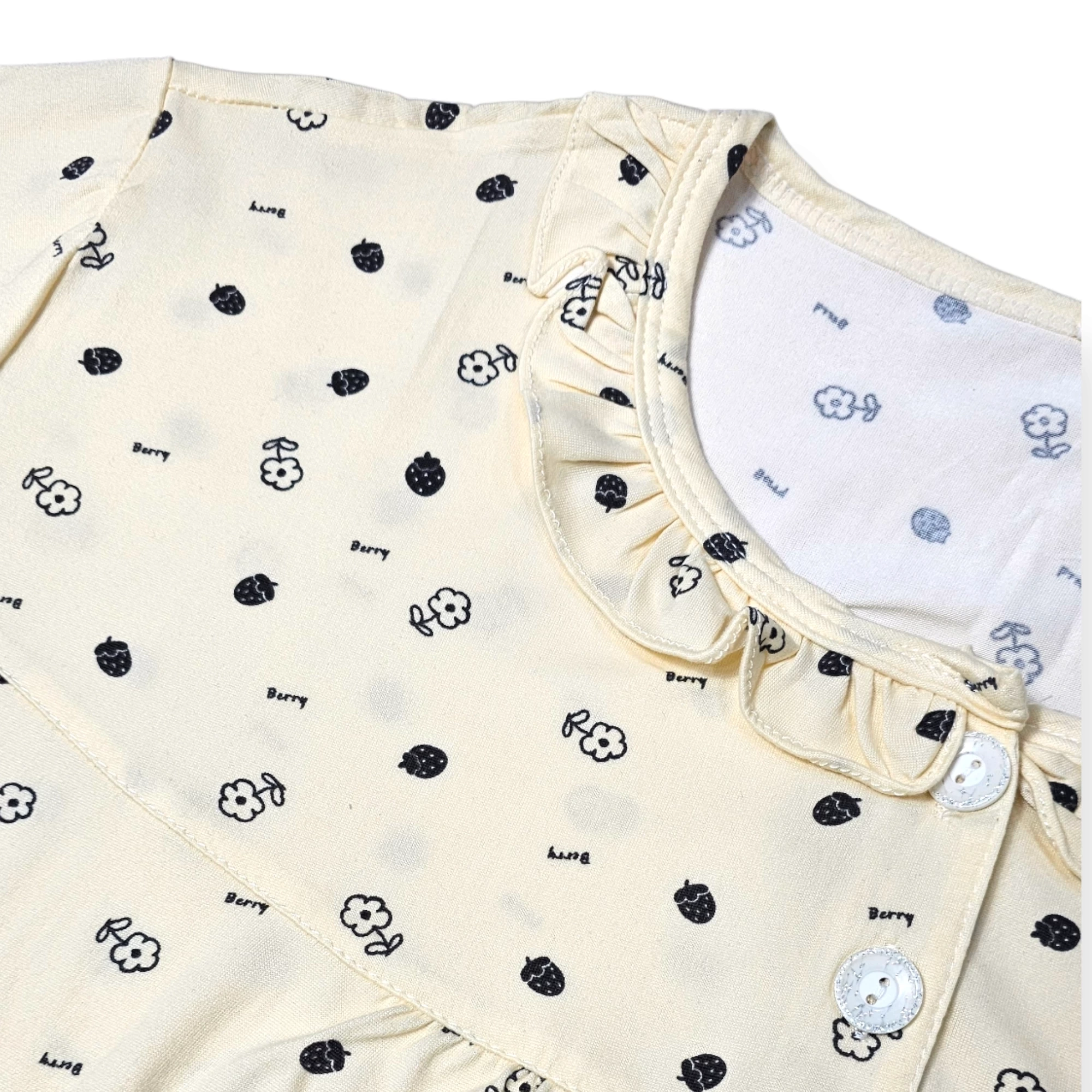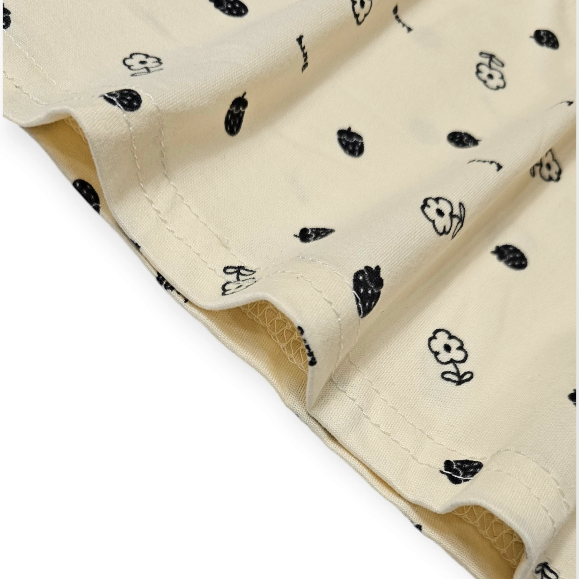 الطقم مزين بنقوش صغيرة منتشرة بشكل منتظم، مما يضفي لمسة جمالية بسيطة وأنيقة.