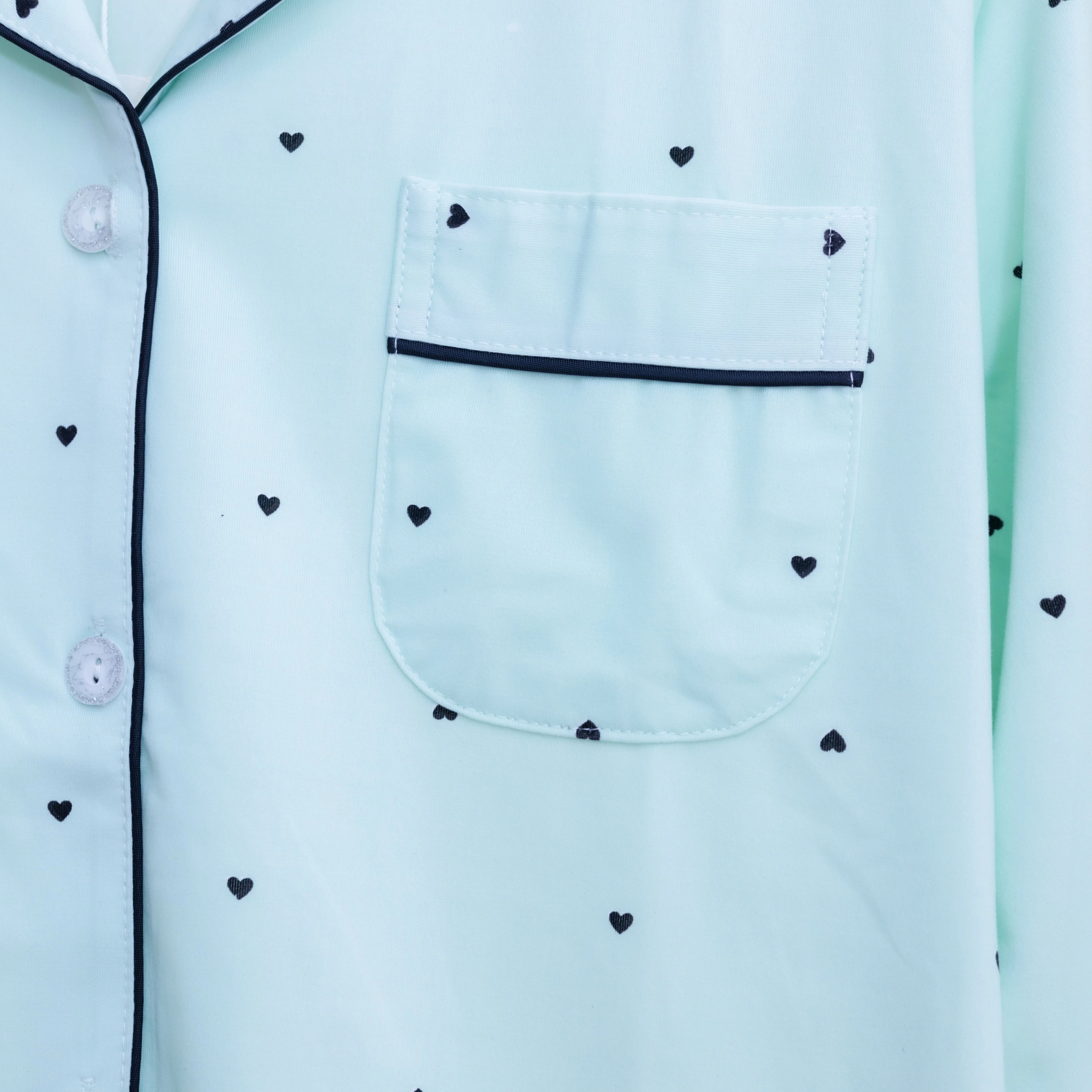 البيجاما النسائية تتميز بتصميم كلاسيكي وأنيق يتكون من قميص بأكمام طويله وياقة مزينة برسمات جميله ،