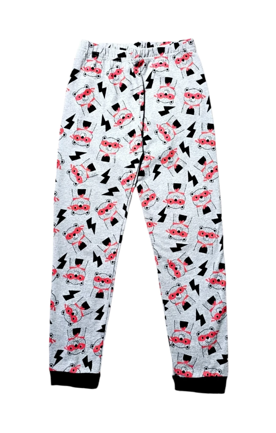 تتكون من قميص وبنطلون مزينين برسومات دب يرتدي قناعًا وربطة عنق،