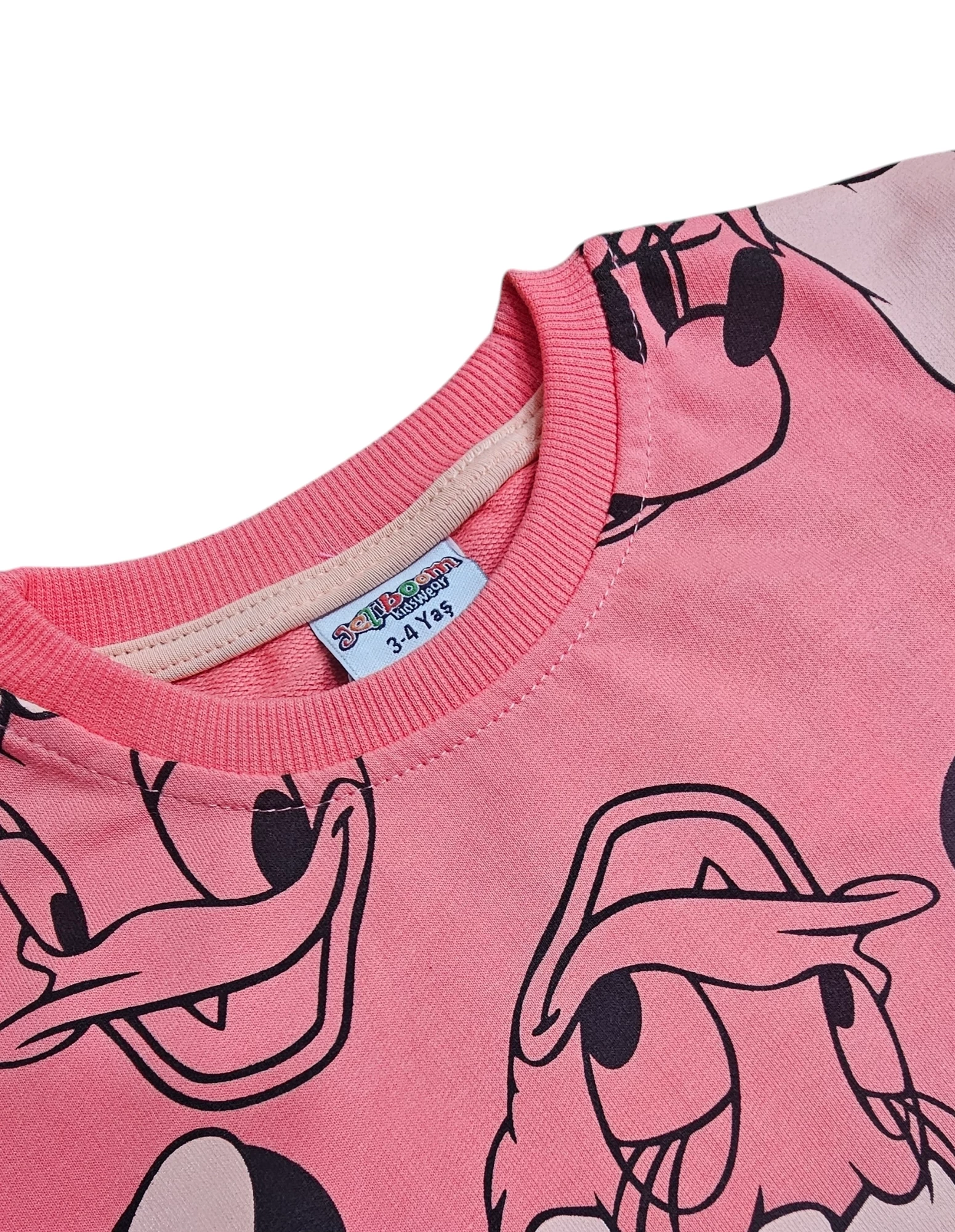 طقم خريفي للفتيات من قطعتين بلوفر وبنطلون برسومات كرتونيه