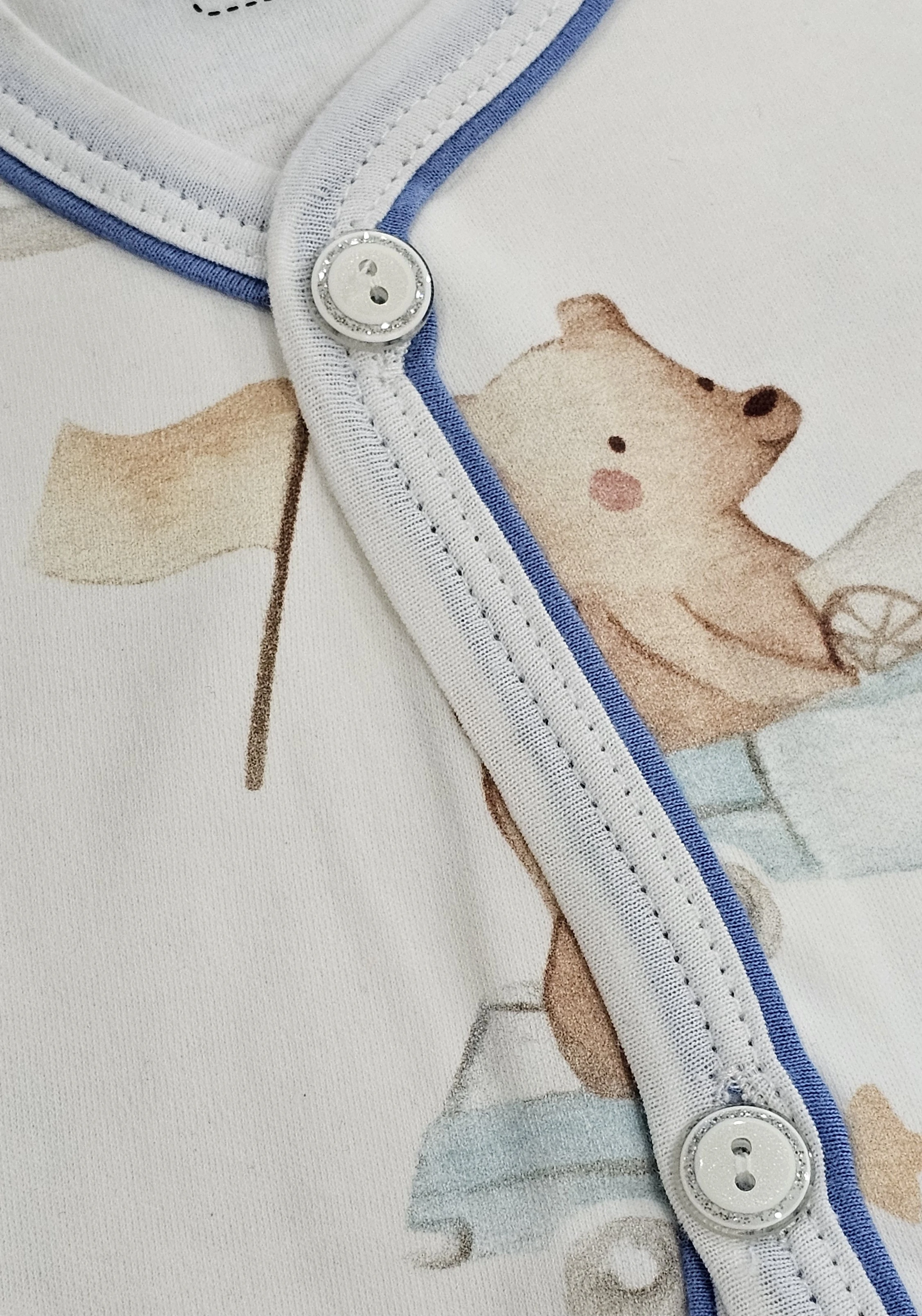 القميص يحتوي على ازرار في الأمام مع حواف بيج.