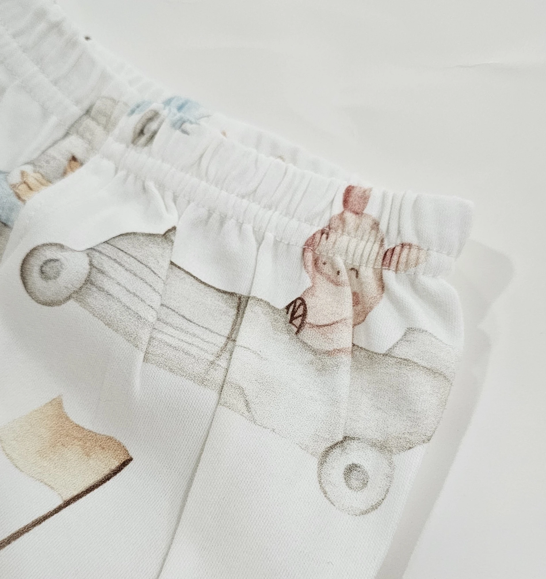 السروال يحتوي على خصر مطاطي.