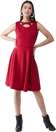• التصميم: سكيتر بقصة واسعة من الأسفل | النمط: سادة| القصة: قصة ضيقة| القبة: قبة دائرية| الأكمام: بدون أكمام | الطول: بطول الركبة