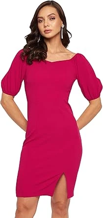 فستان سادة بقصة ضيقة ورقبة على شكل حرف V حريمي من ميس اوليف، موديل (MOSS22D16-01