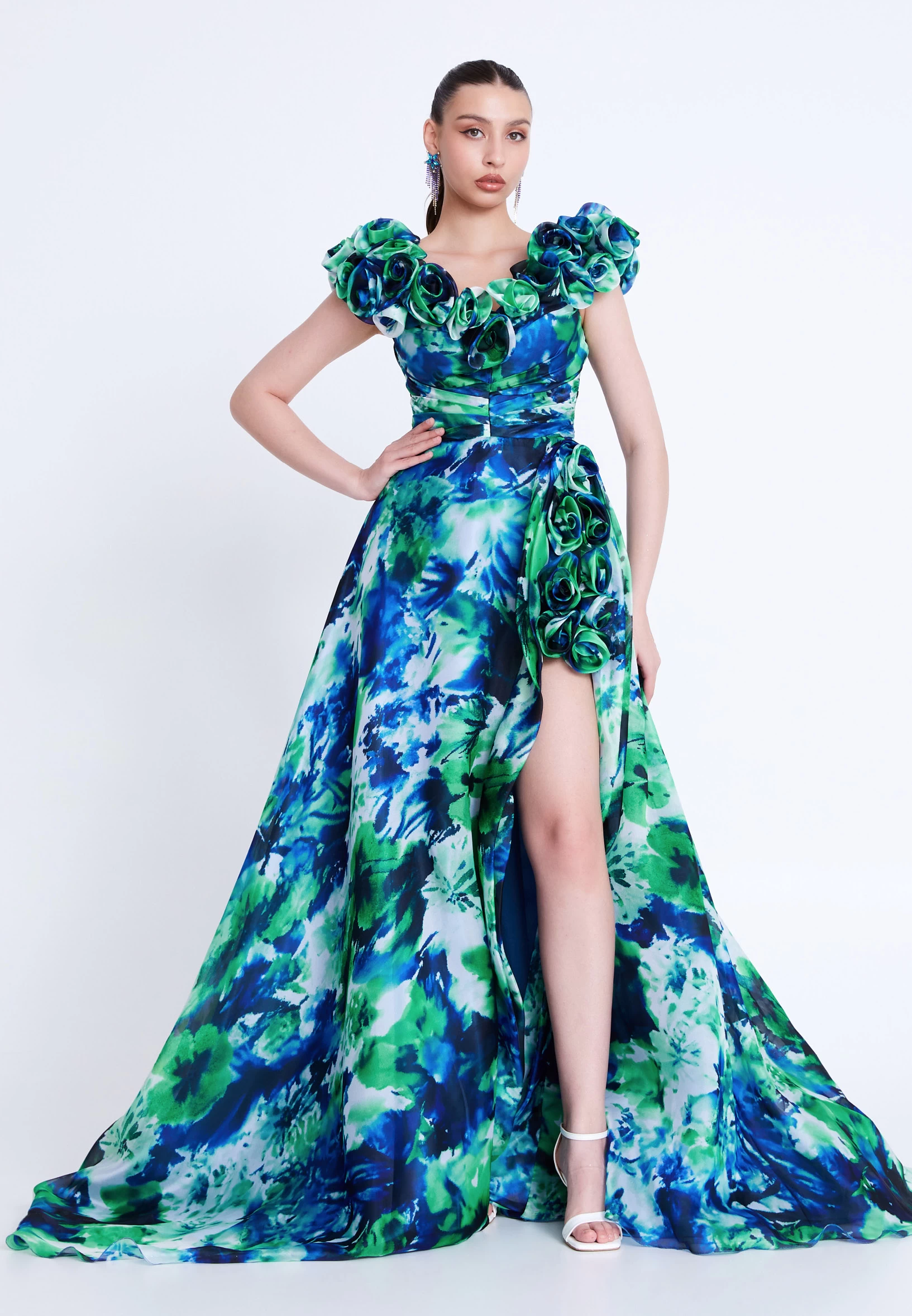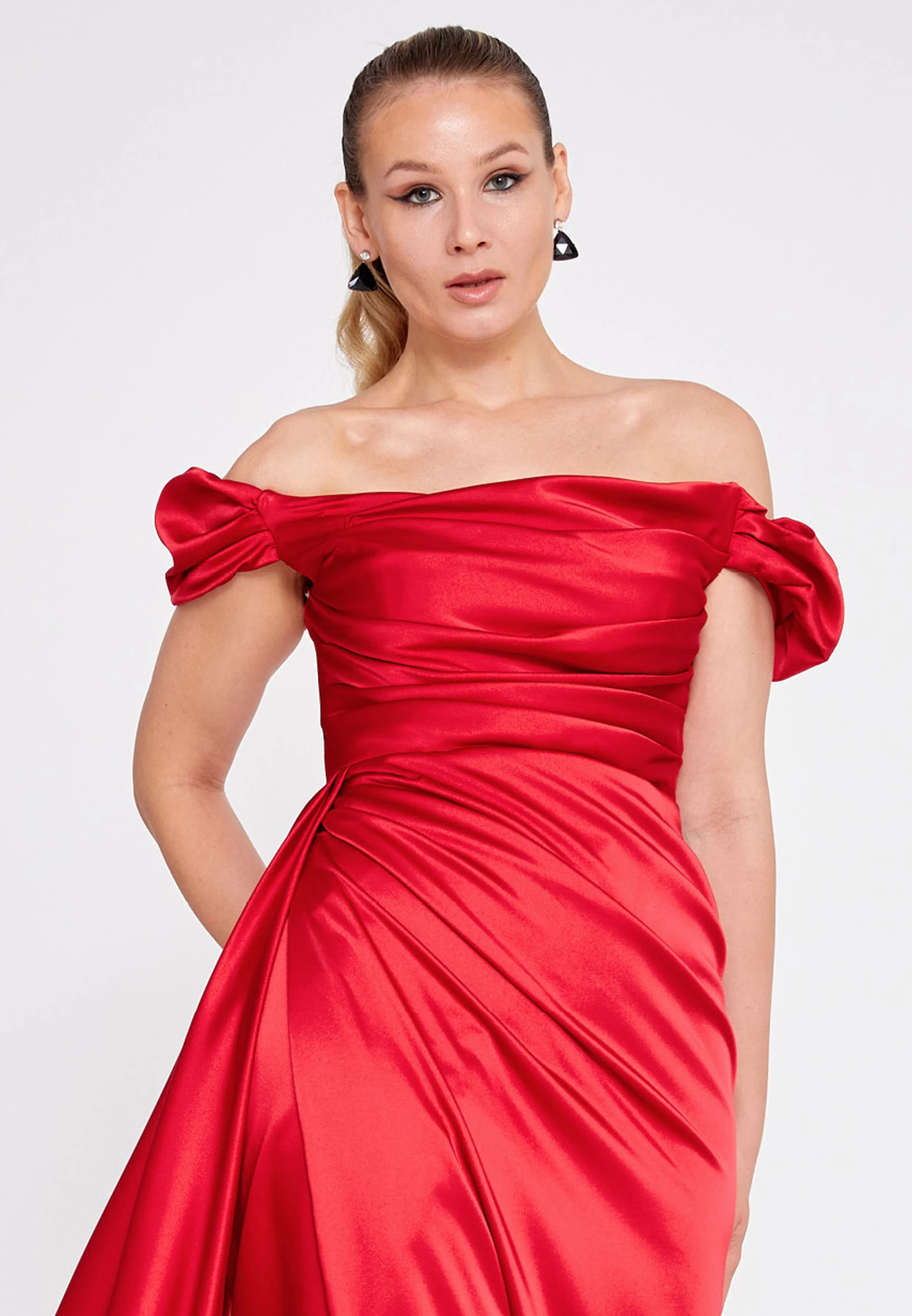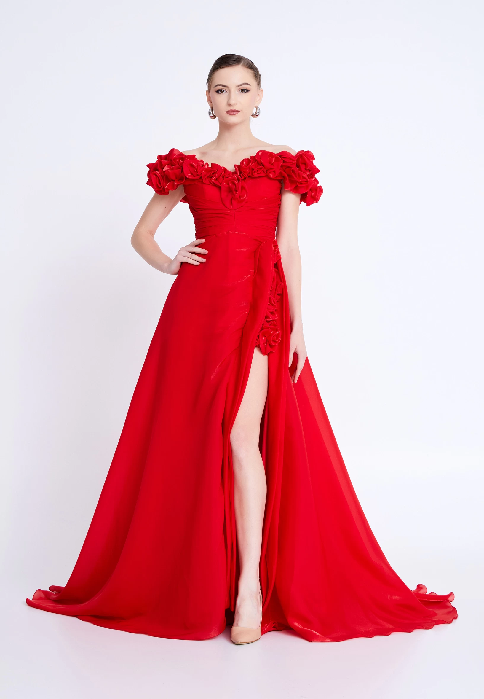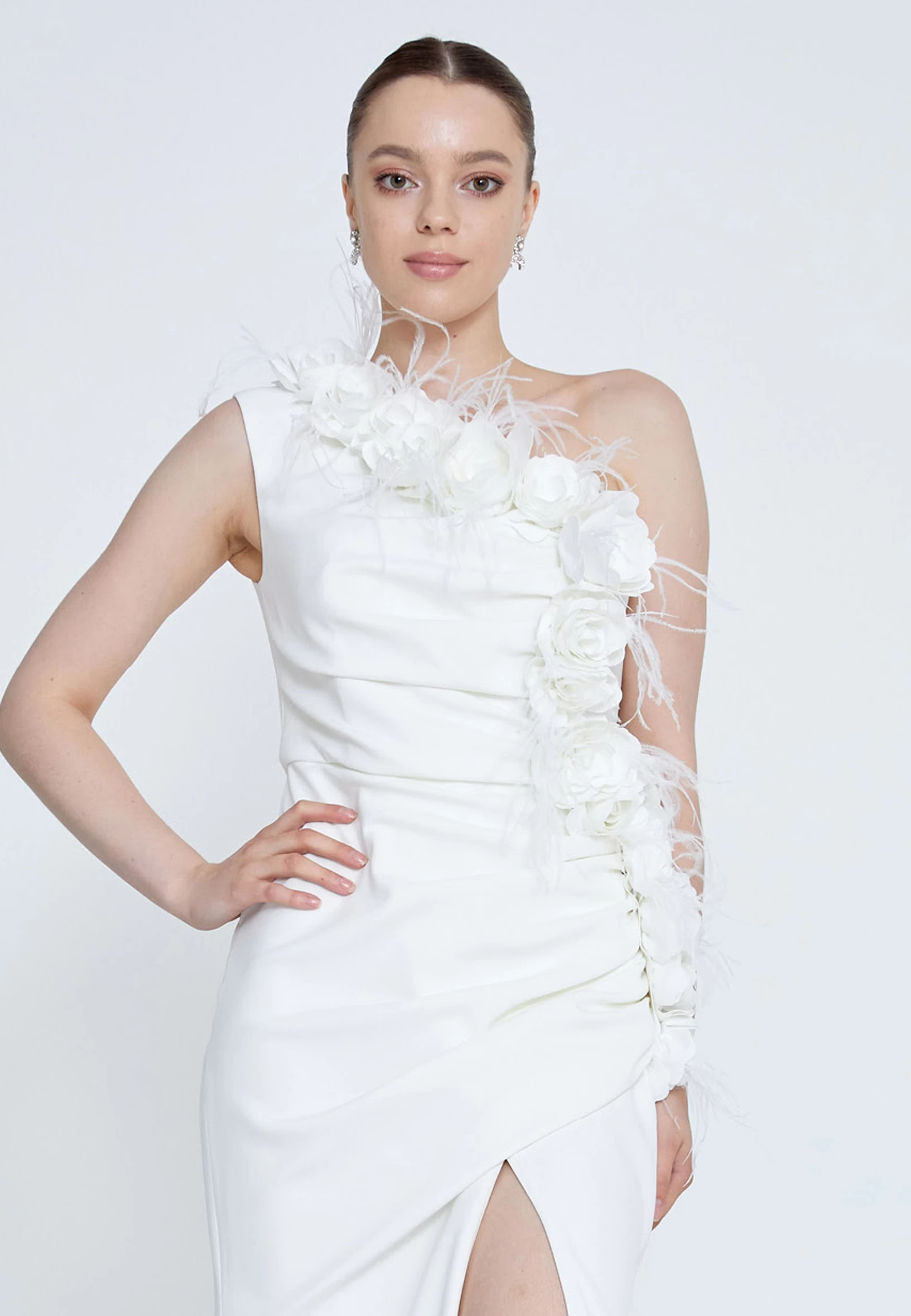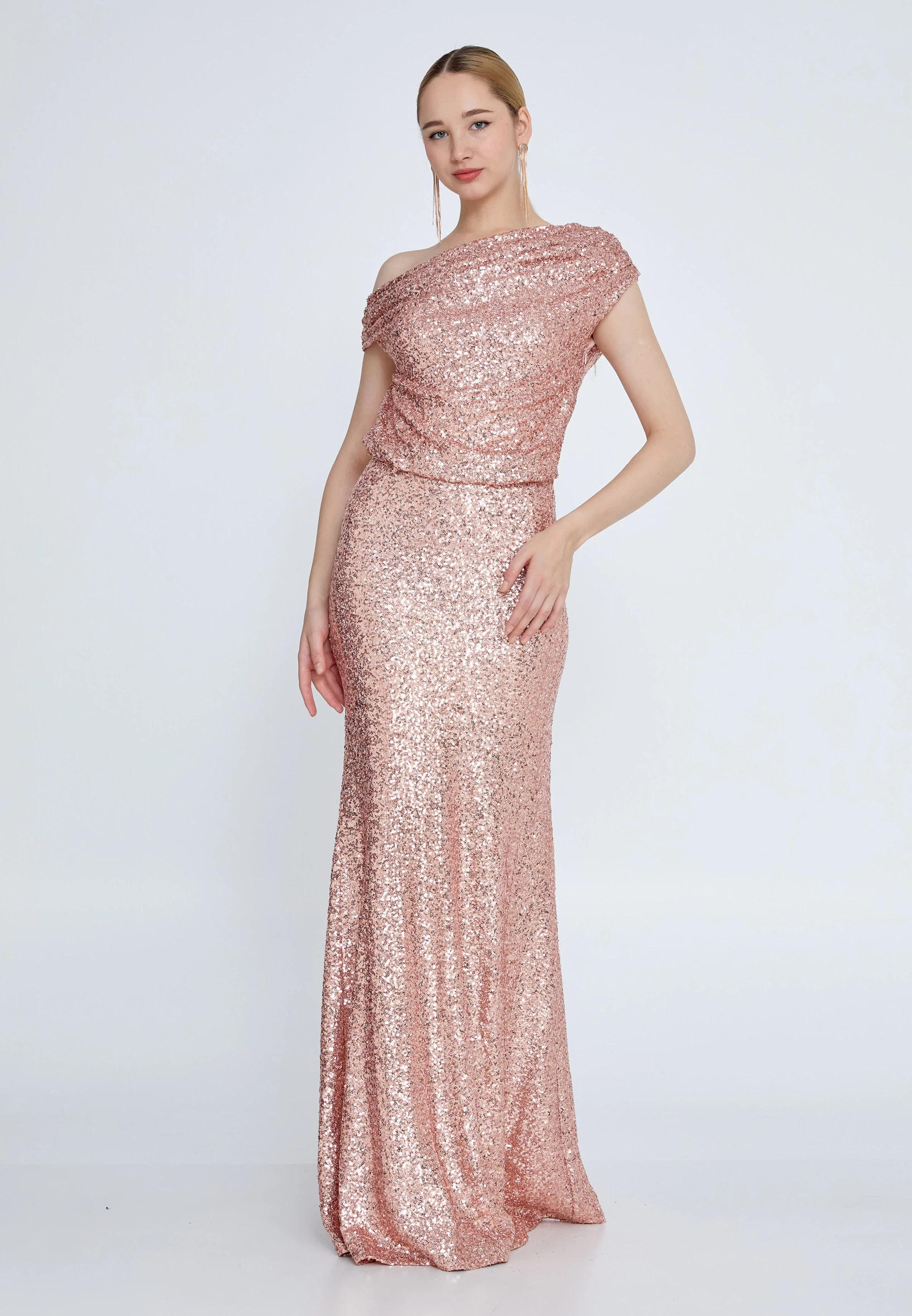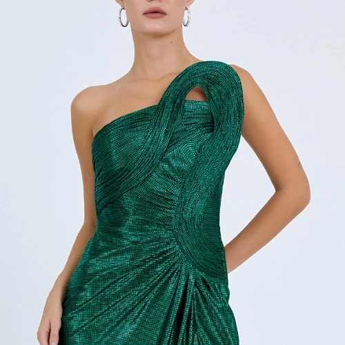 فستان سهره وردي انيق بكتف واحد