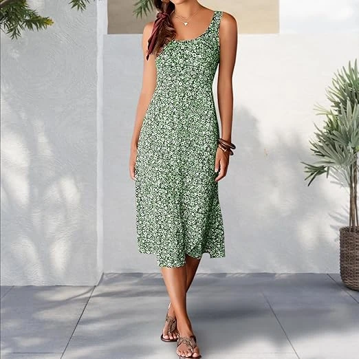 فستان صيفي للشاطئ بقصة ايه لاين واسعة من الأسفل، فستان بدون أكمام برقبة دائرية م