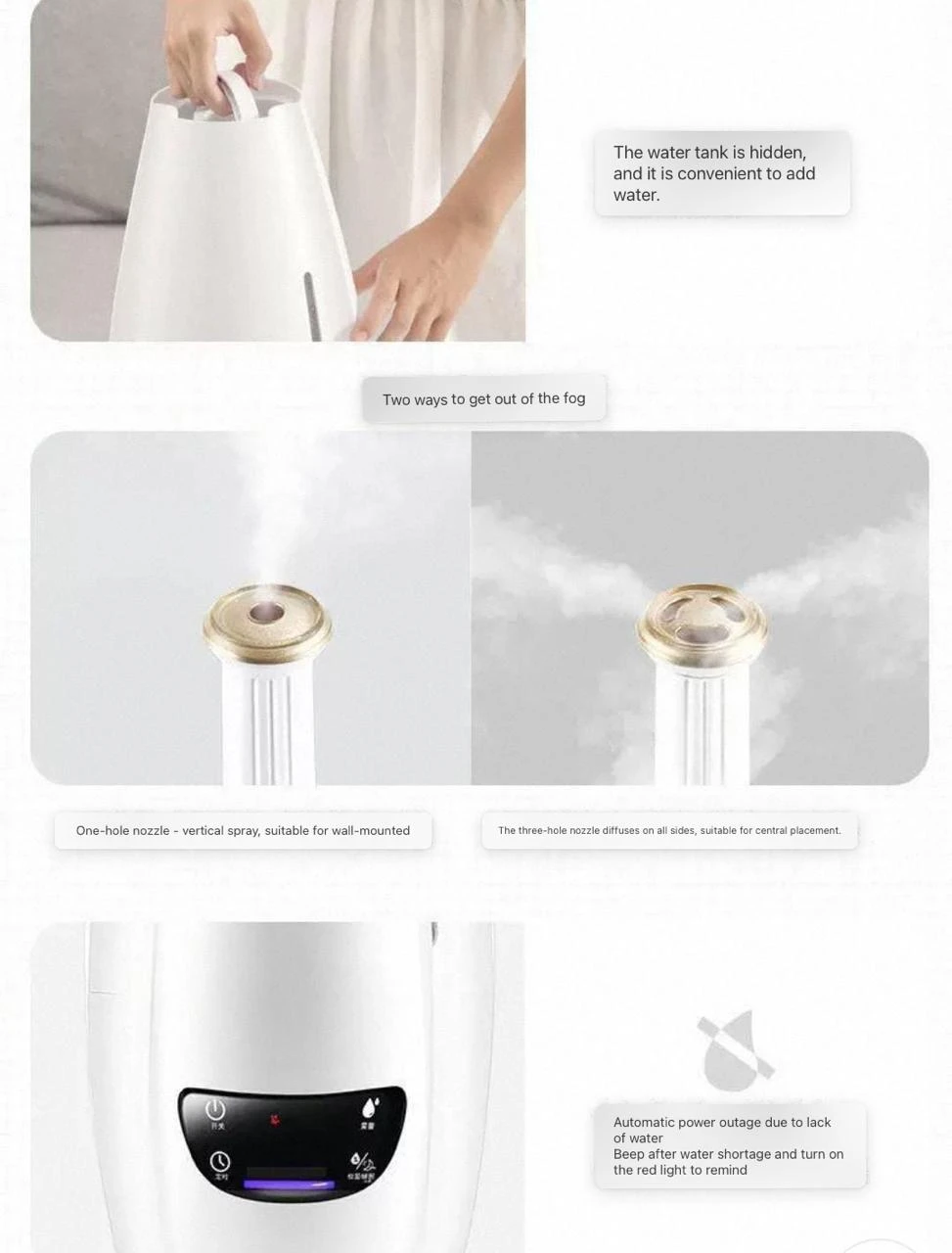 - 🌫️ رذاذ قابل للتوجيه: فوهة قابلة للدوران 360° لتوزيع الضباب حسب الحاجة.