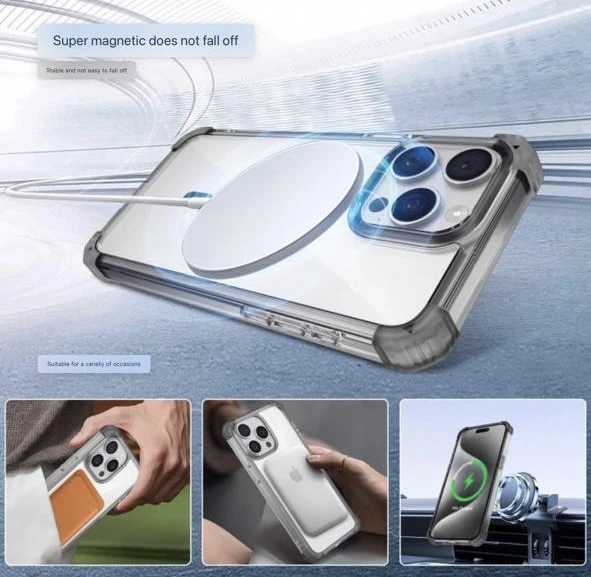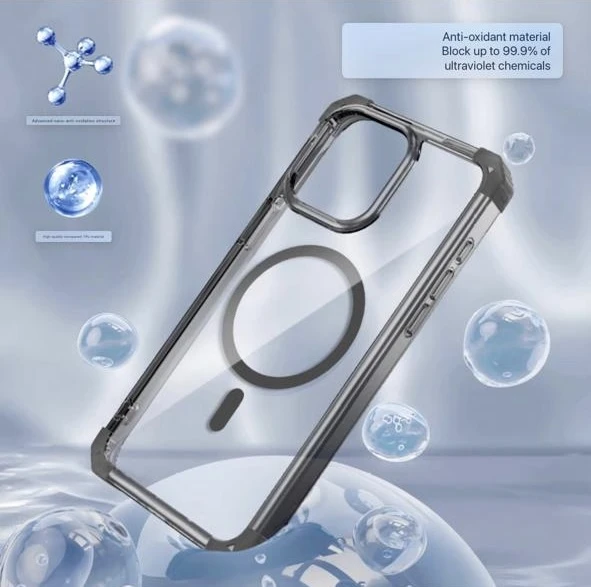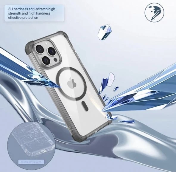 الكفر شفاف ومصمم خصيصًا لهاتف آيفون. يتميز بفتحة دائرية كبيرة في الخلف تُبرز شعار آبل،