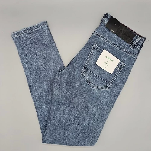 بنطلون جينز رجالي بلون موحد بتصميم كاجوال بجيوب اماميه وخلفيه بارجل ضيقه