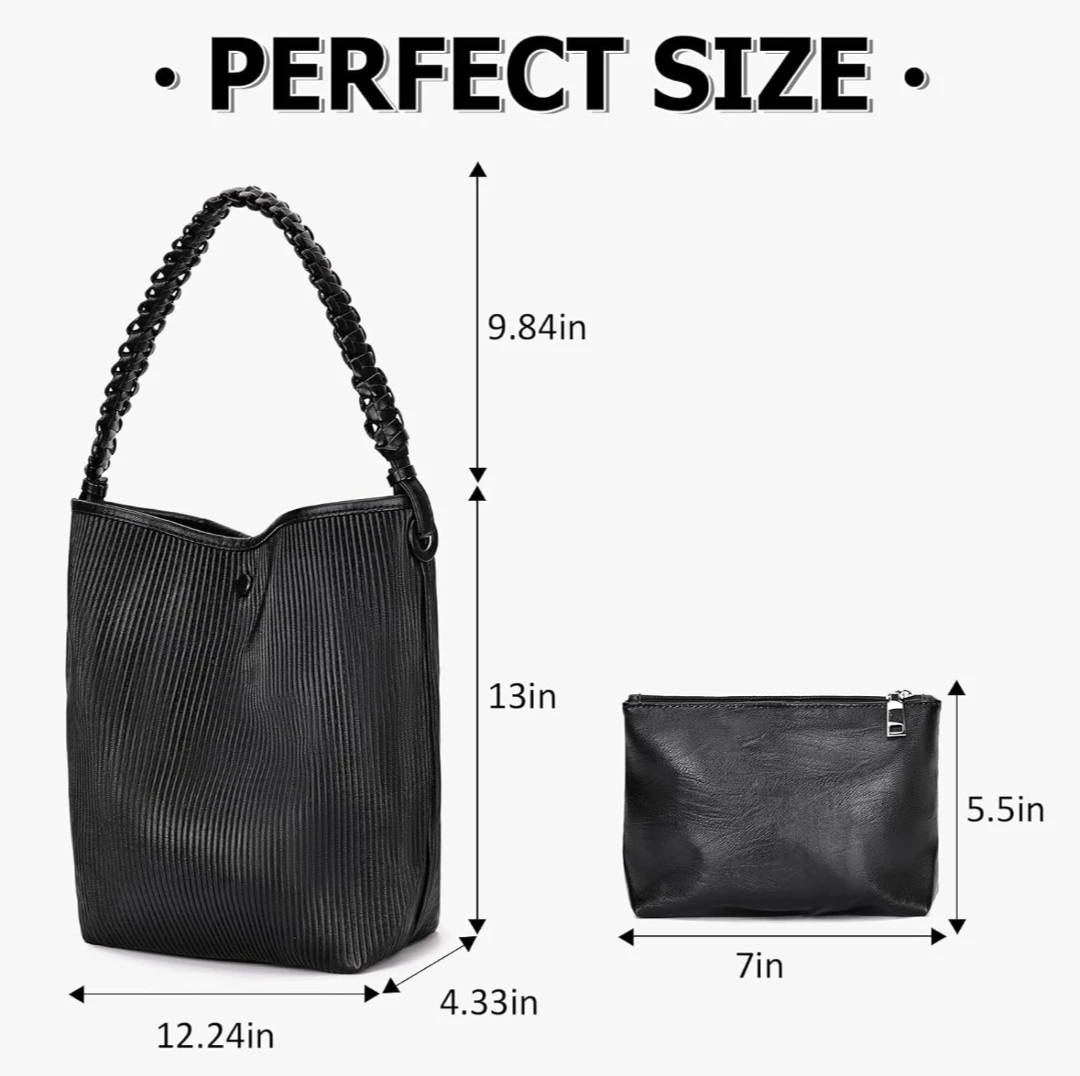 حقيبه نسائيه ذات سعه كبيره جميله وانيقه بلون موحد ومعها حقيبه مكياج صغيره