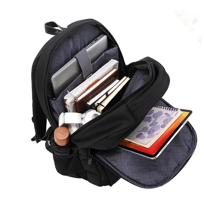 هذه الحقيبة عبارة عن حقيبة ظهر سوداء، بتصميم عصري وأنيق.
