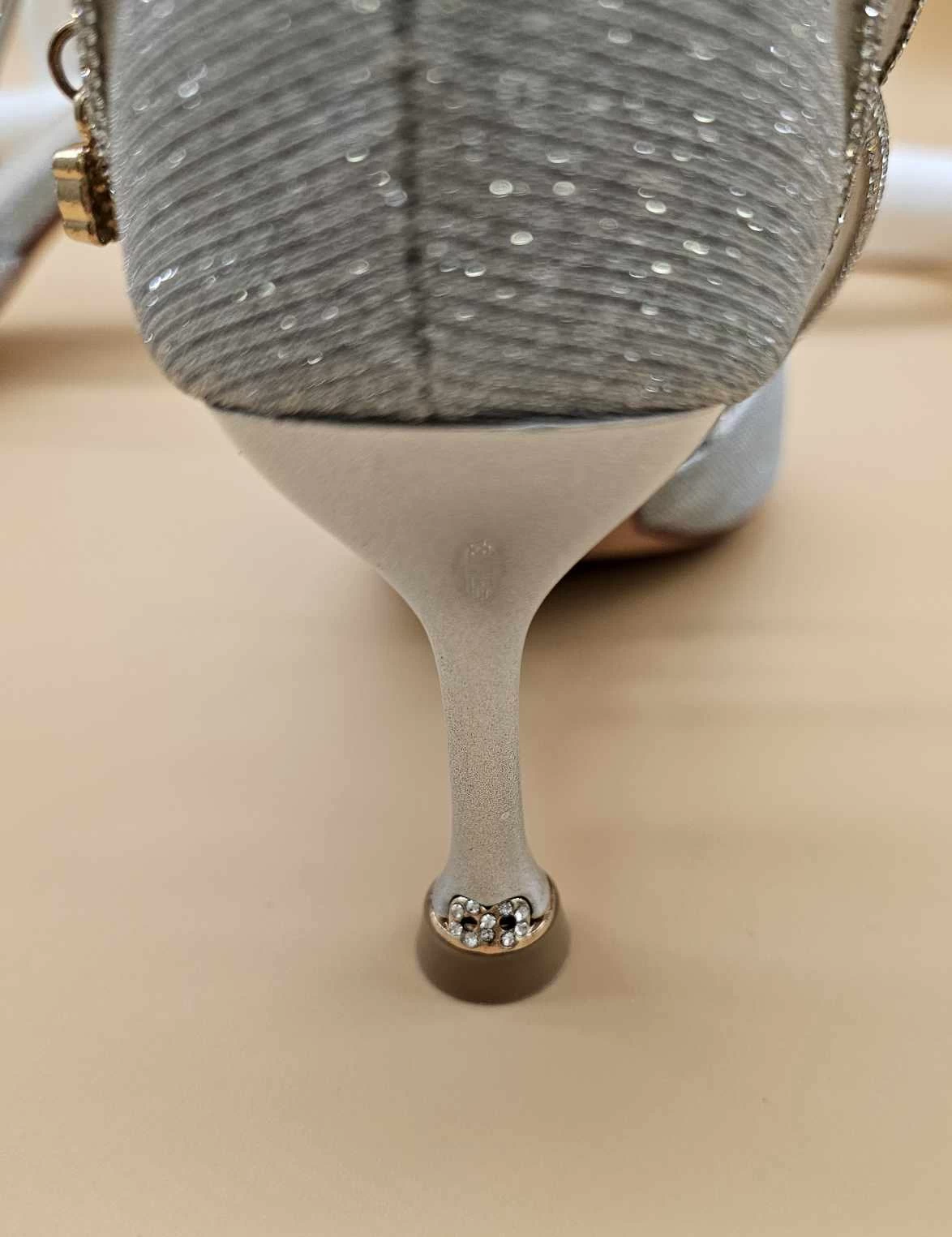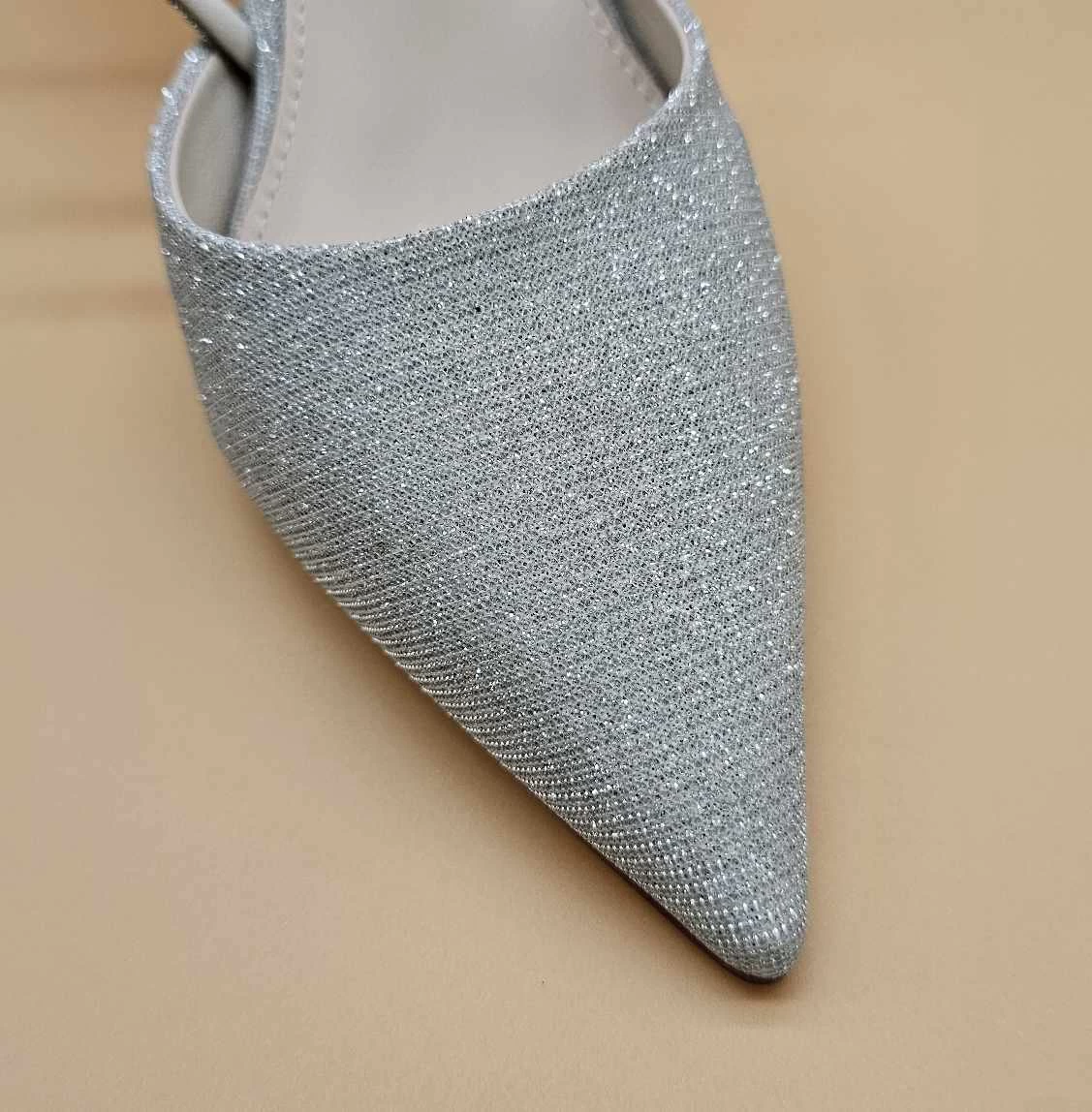 حذاء بكعب عالي رفيع بإصبع مدبب للنساء بتصميم خلخال على الكاحل باللون الفضي للزفاف أو الحفلات أو المناسبات